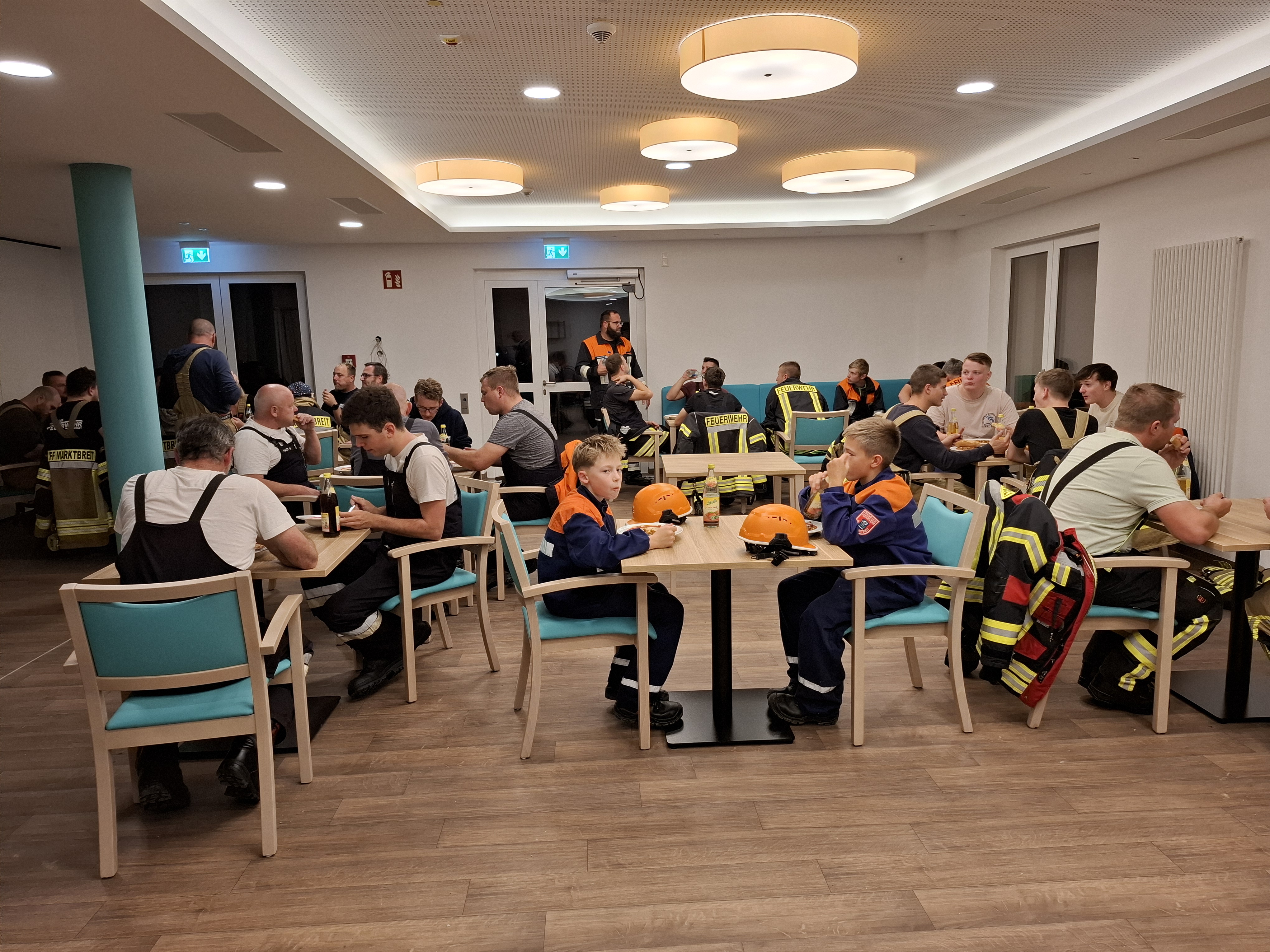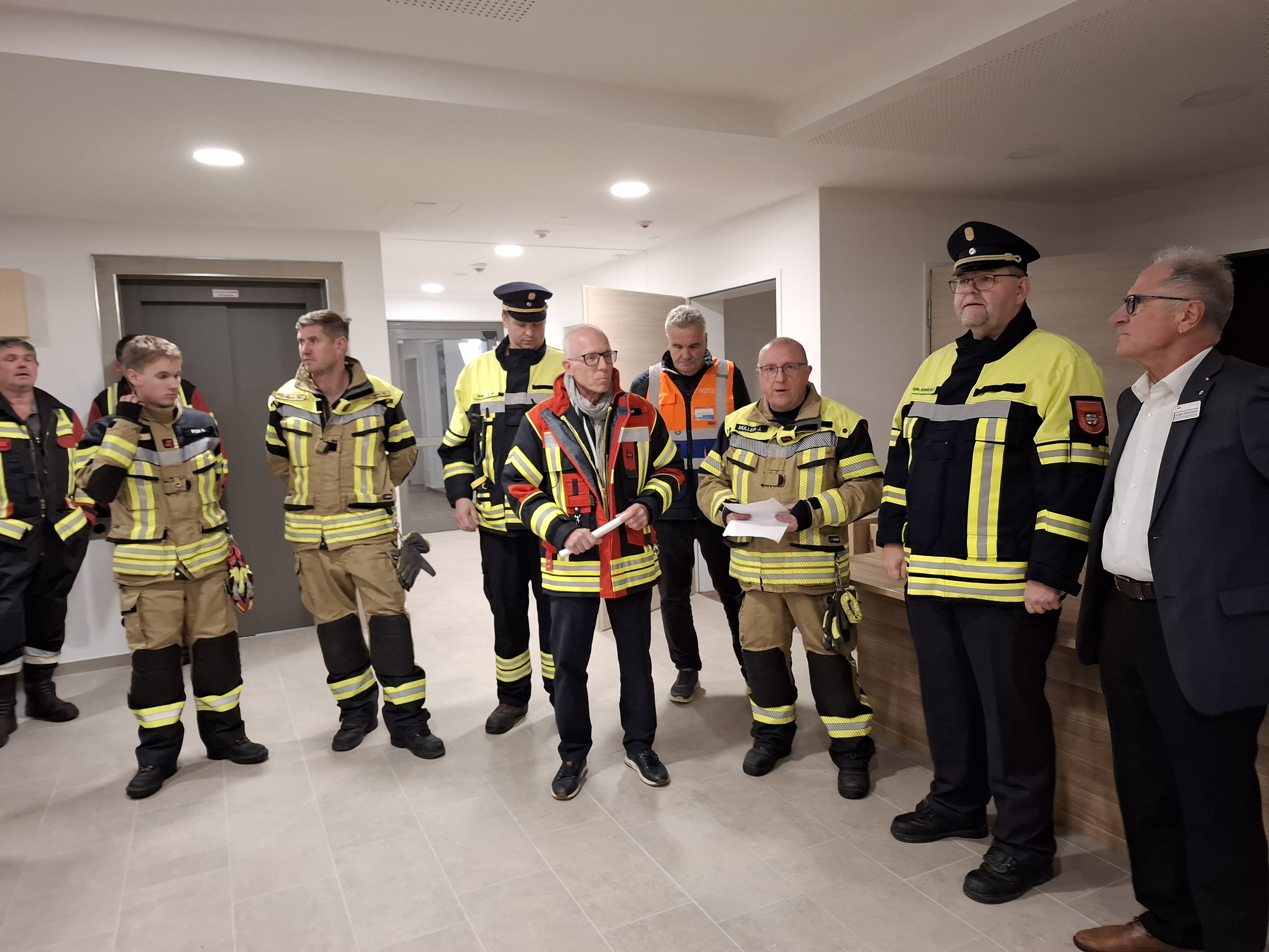 Nach ein paar Worten durch den 1. Kommandanten der Feuerwehr Marktbreit Joachim Müller, dem Kreisbrandrat Dirk Albrecht und dem 1. Bürgermeister der Stadt Marktbreit Harald Kopp bedankte sich Einrichtungsleiter Ludger Schuhmann für die beeindruckende Übung und lud alle Beteiligten zu einem gemeinsamen Essen ein.