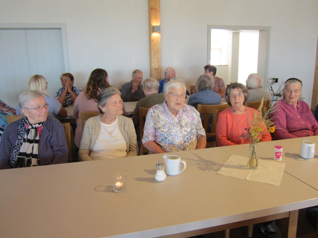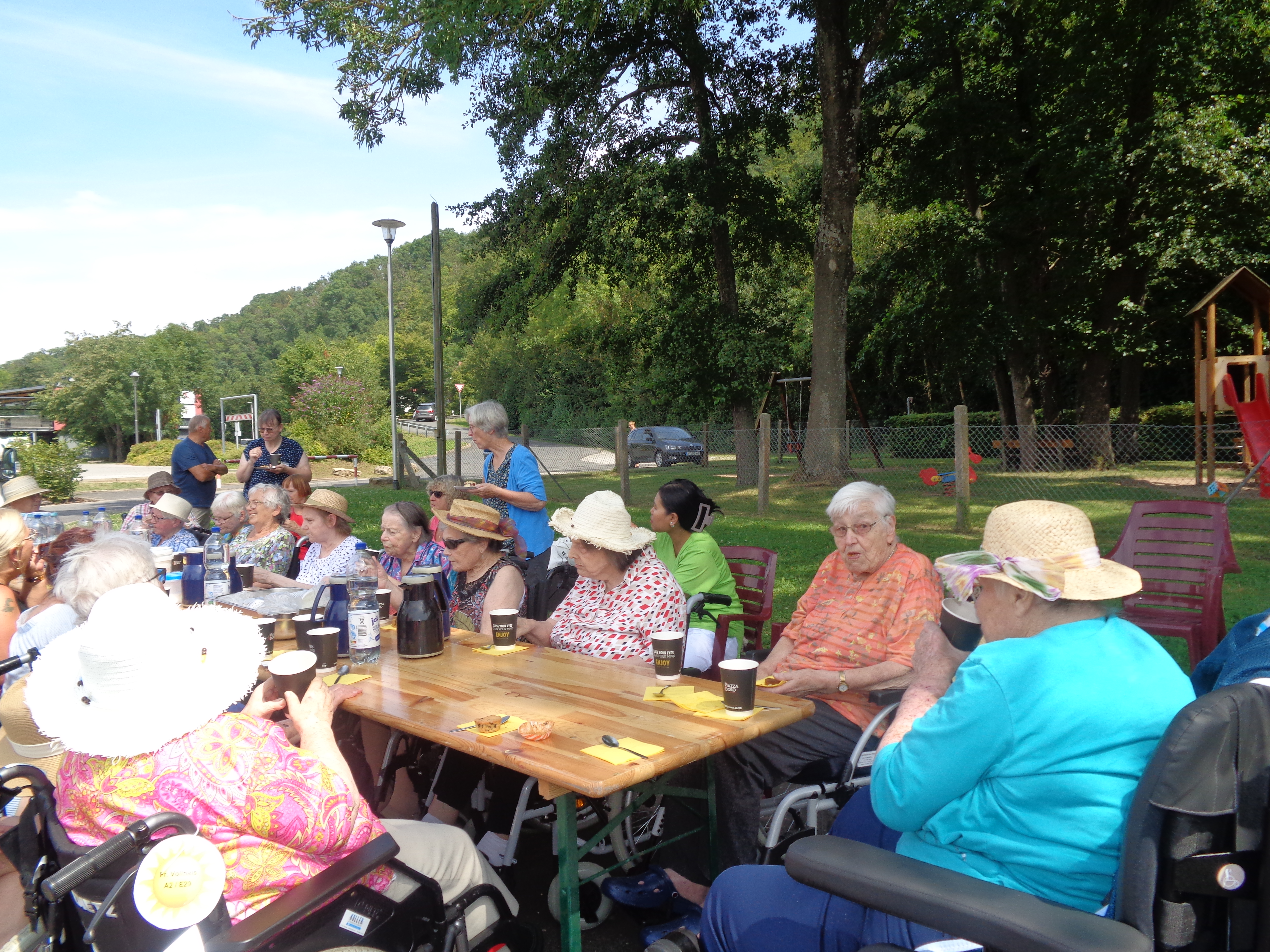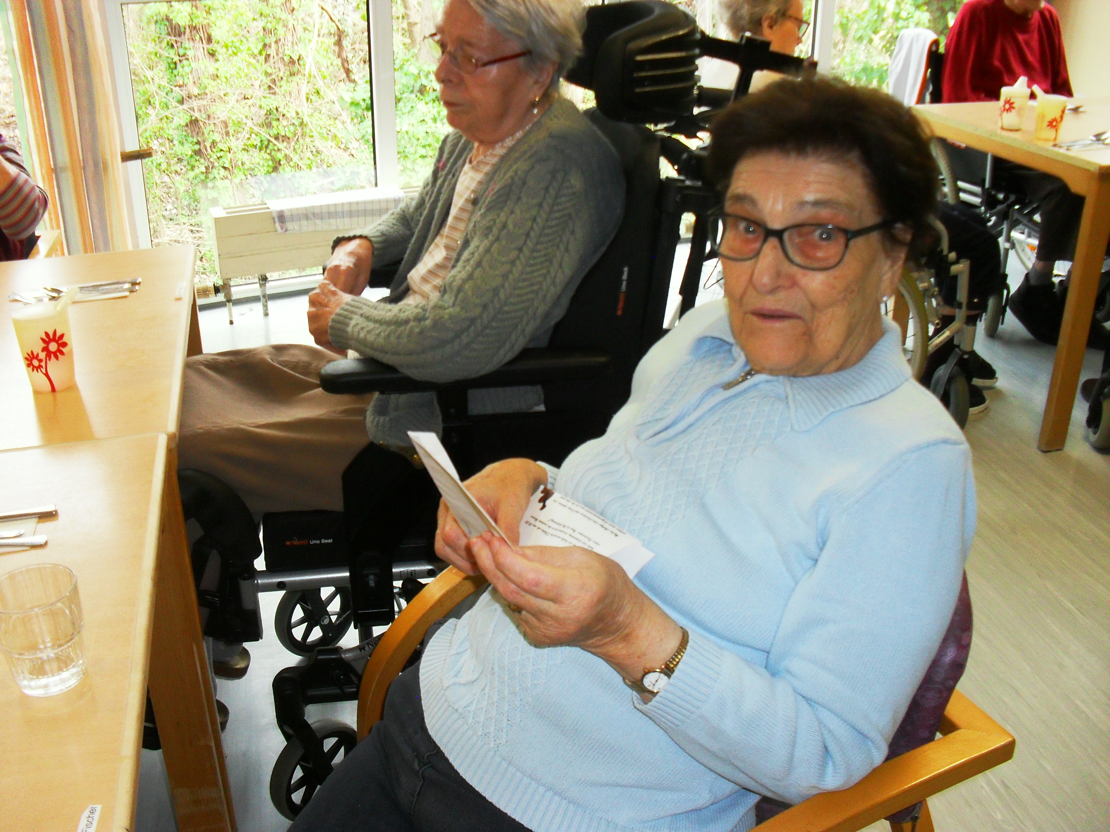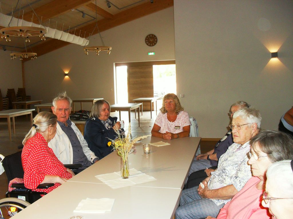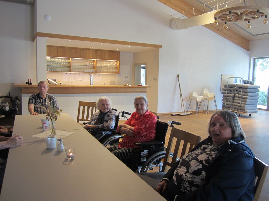 Alle Bewohnerinnen und Bewohner, die in den Monaten Juli und August Geburtstag hatten, waren zum gemeinsamen Kaffeetrinken und Kuchen essen eingeladen. Dieses Mal hatten sehr viele Geburtstag und die Tafel war entsprechend lang.