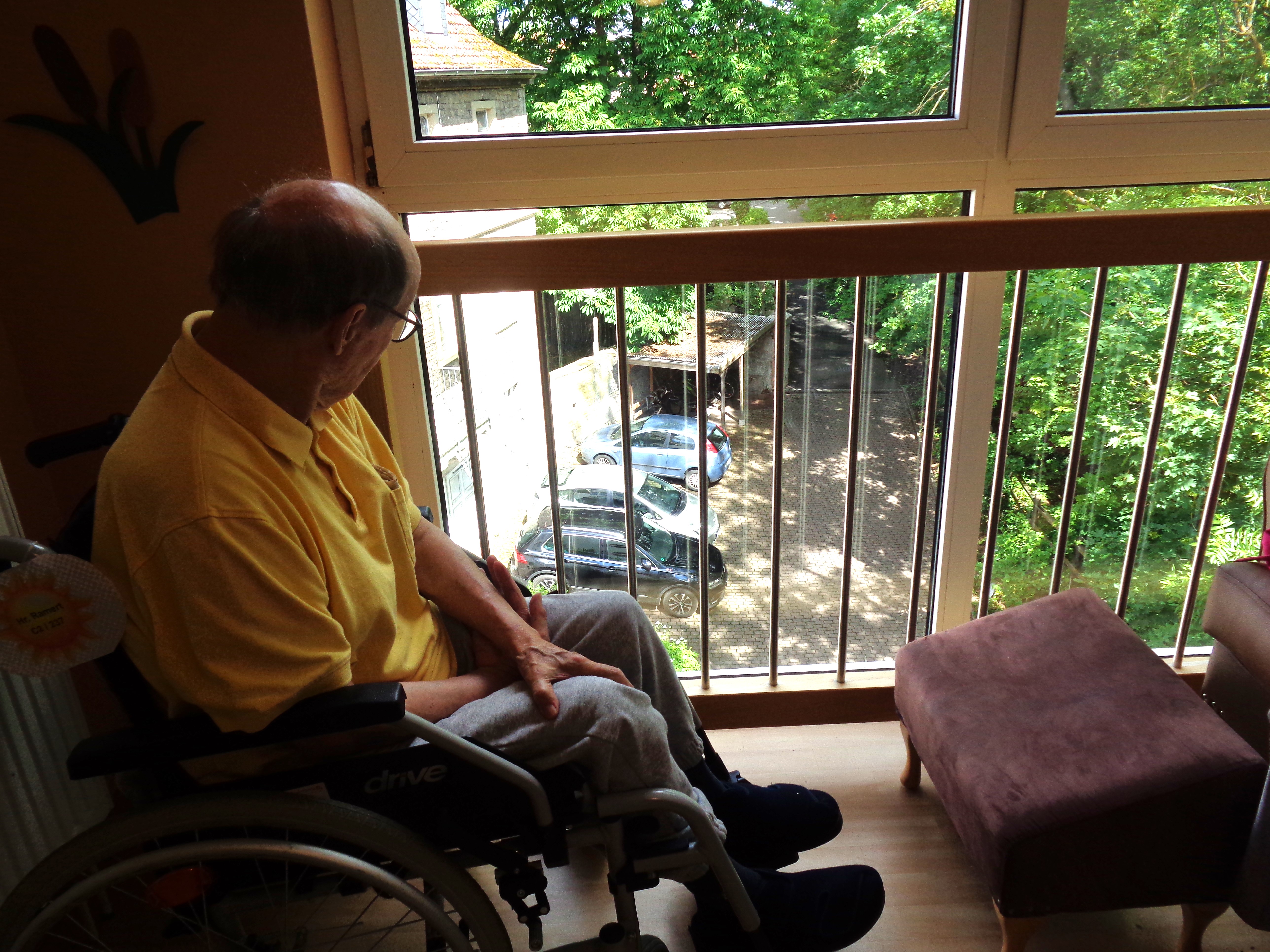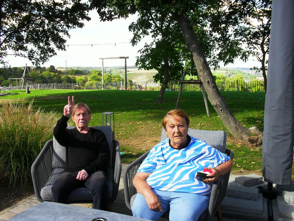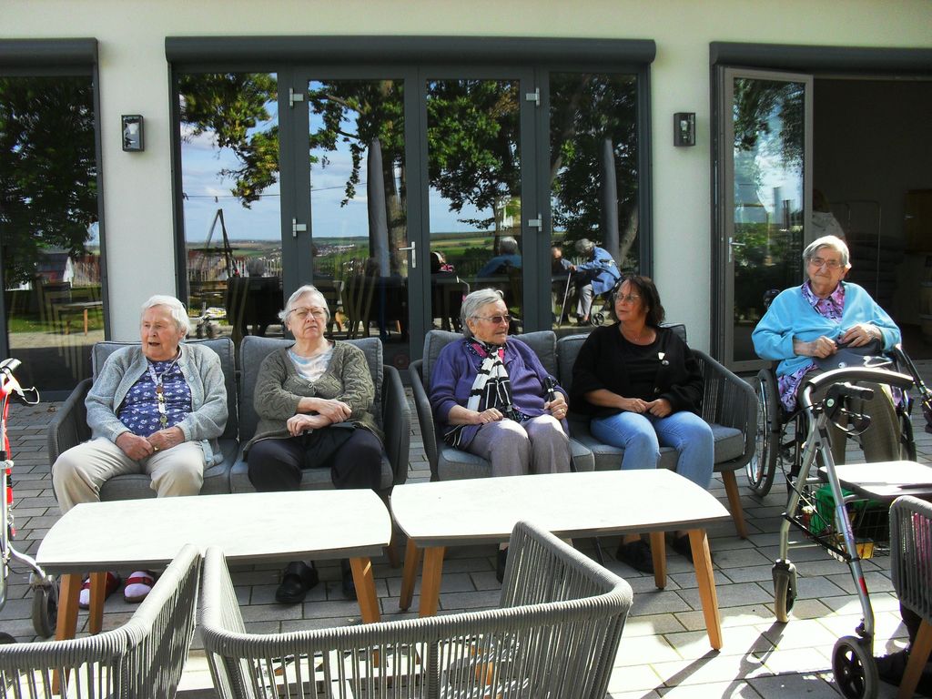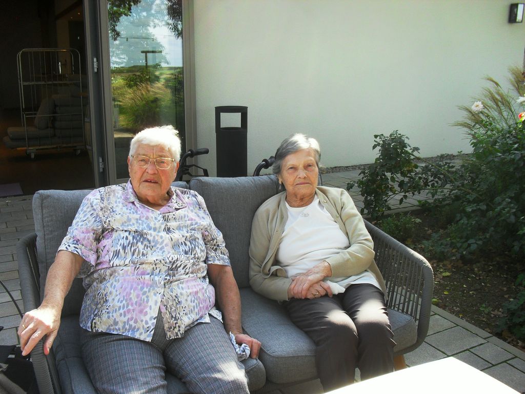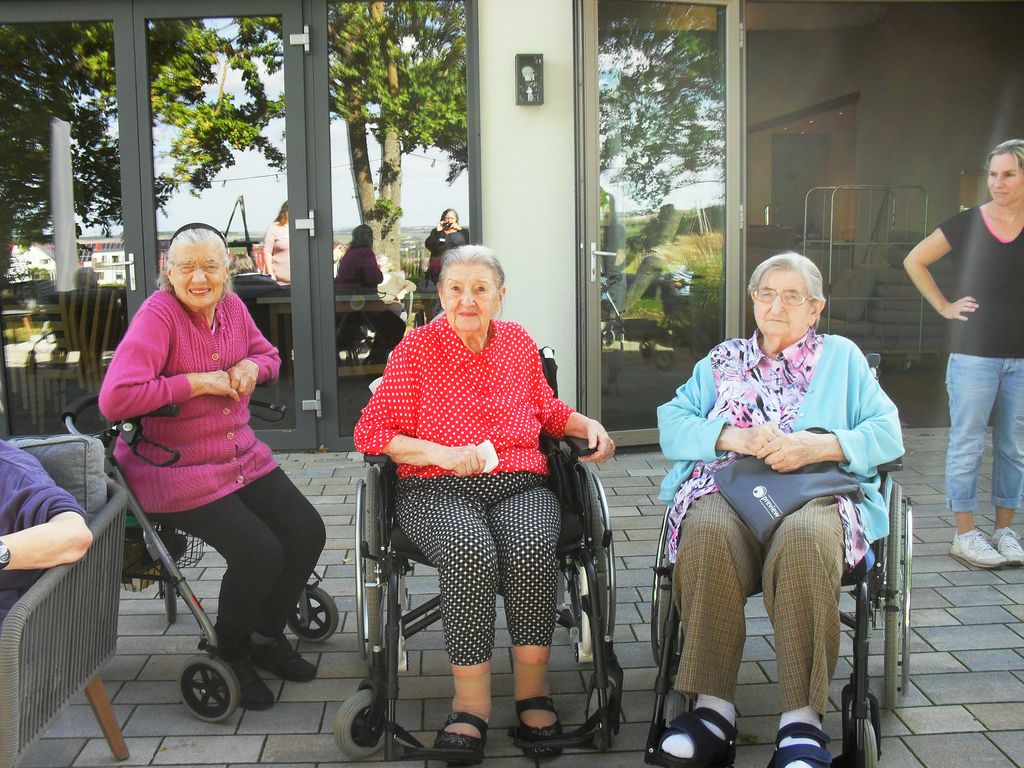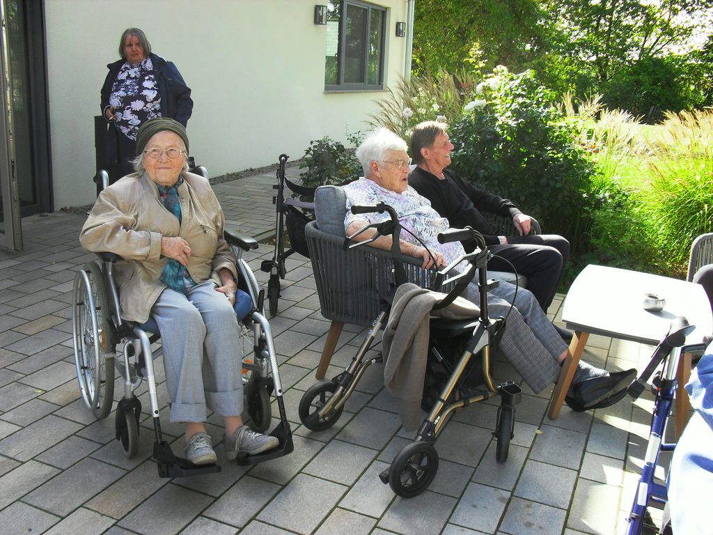 Vor dem Haus treffen sich bei schönem Wetter unsere Bewohnerinnen und Bewohner sehr gerne zu einem kleinen Schwatz und genießen gemeinsam die letzten Sonnentage dieses Sommers.