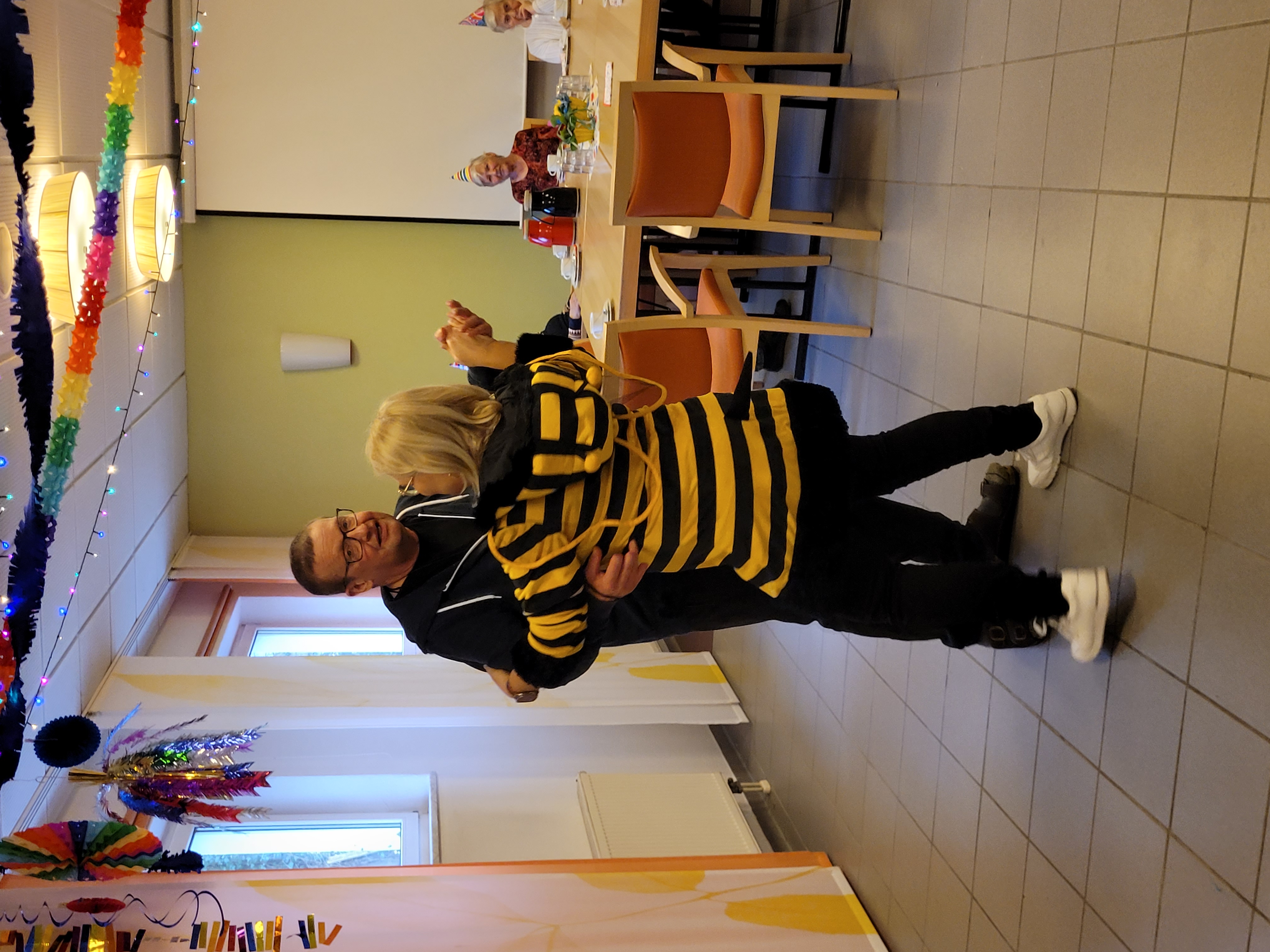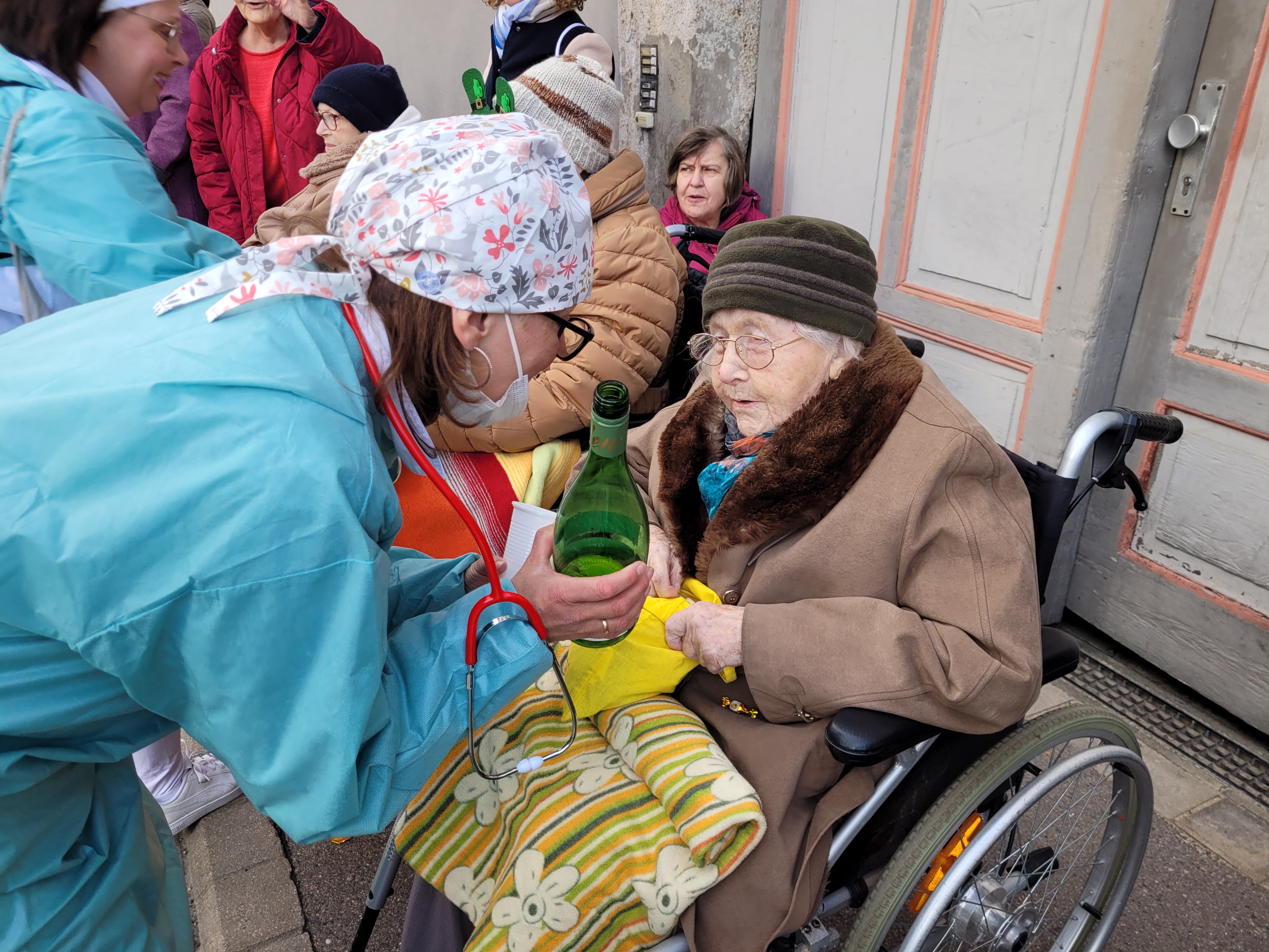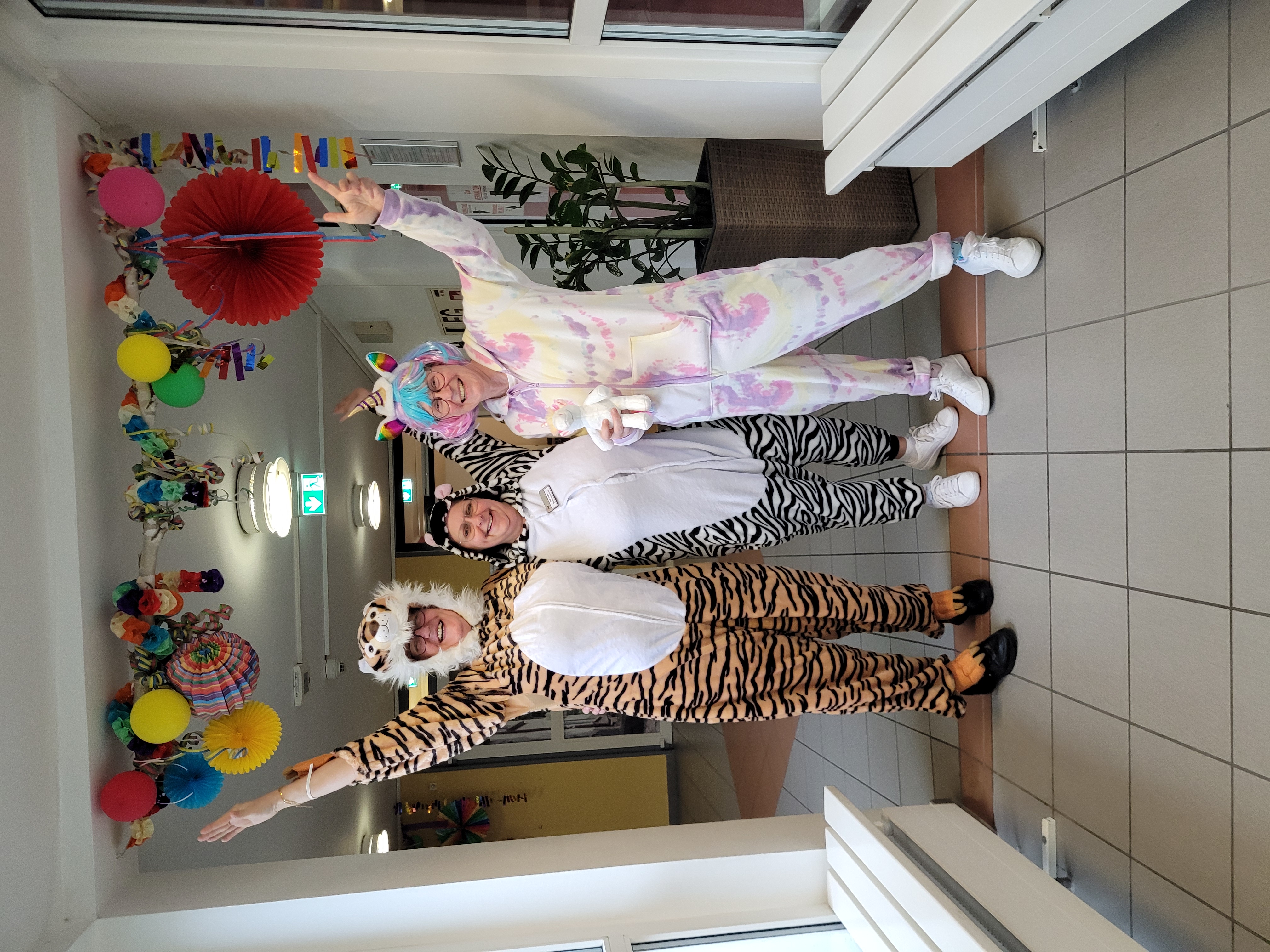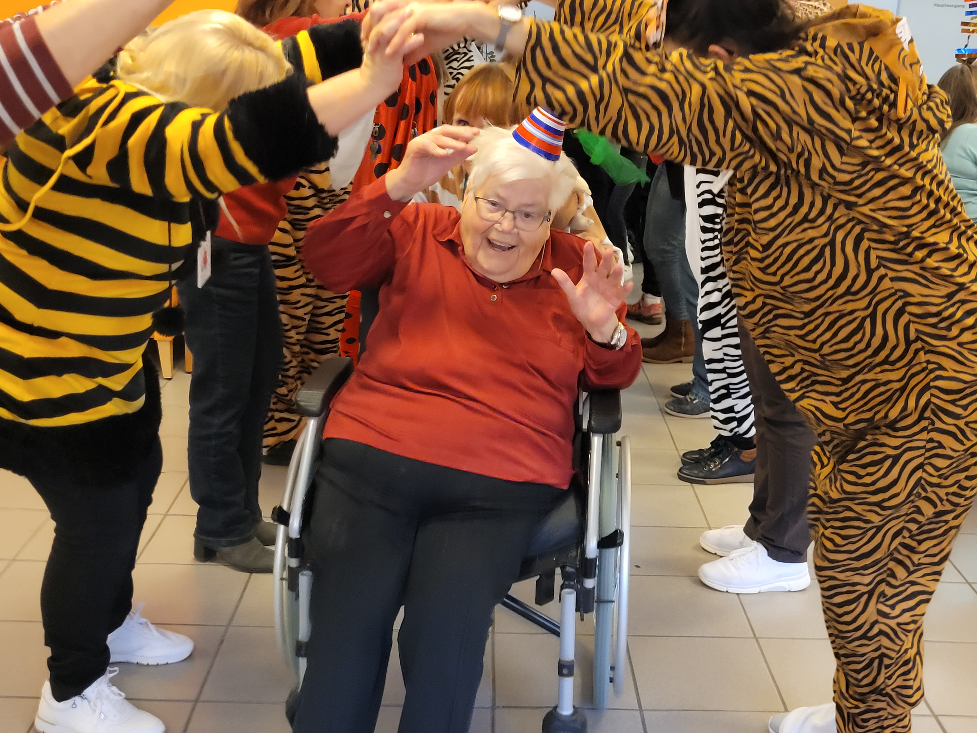 Am Rosenmontag wurde der Fasching ausgelassen gefeiert. Aus allen Wohnbereichen kamen verkleidete Bewohnerinnen und Bewohner, um gemeinsam Fasching zu feiern. Das Team der Sozialen Betreuung hat unter der Leitung von Heidi Krauß mal wieder ein kurzweiliges Programm zusammengestellt und so für beste Stimmung gesorgt. Eine Tanzgruppe aus Gnodstadt bot ihre Kunst dar und nahm die Mitarbeiterinnen und Mitarbeiter sowie die Seniorinnen und Senioren mit zur Polonaise. Eine Büttenrede gab es natürlich auch. Eine unserer Tagespflegegäste hielt sie wieder und erfreute und beindruckte (sie wird demnächst 87 Jahre alt) das Publikum damit. Zur Freude aller gab das Mitarbeiterteam noch den Ententanz zum Besten. Für das leibliche Wohl war selbstverständlich auch gesorgt, es gab Krapfen und Kaffee ☕ und im Anschluss noch Knabbersachen und kalte Getränke.