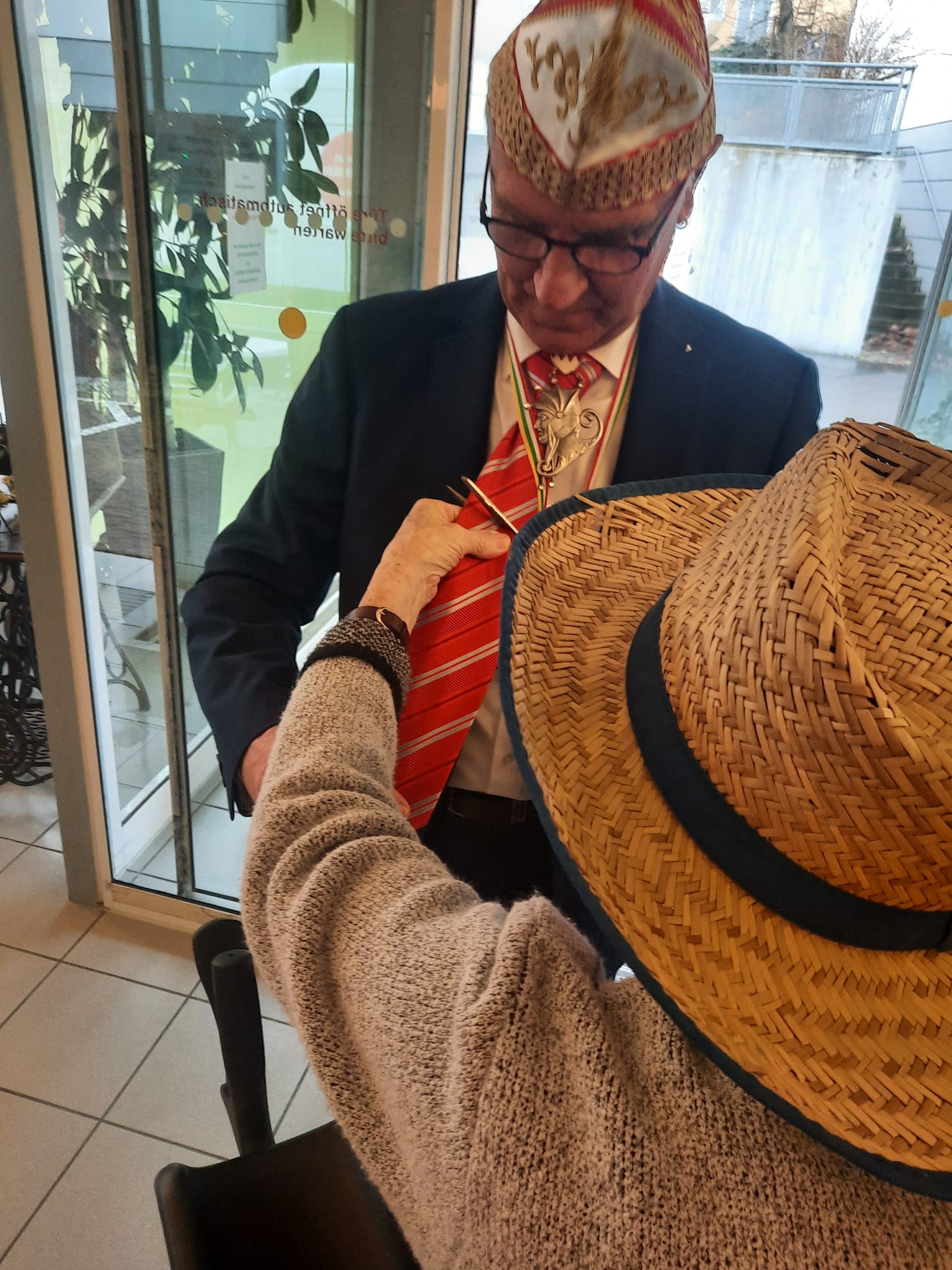 Alle Teilnehmerinnen und Teilnehmer wurden mit einem Faschingsorden durch den Ehrenpräsidenten der Faschingsgilde Giemaul Ludger Schuhmann geehrt.