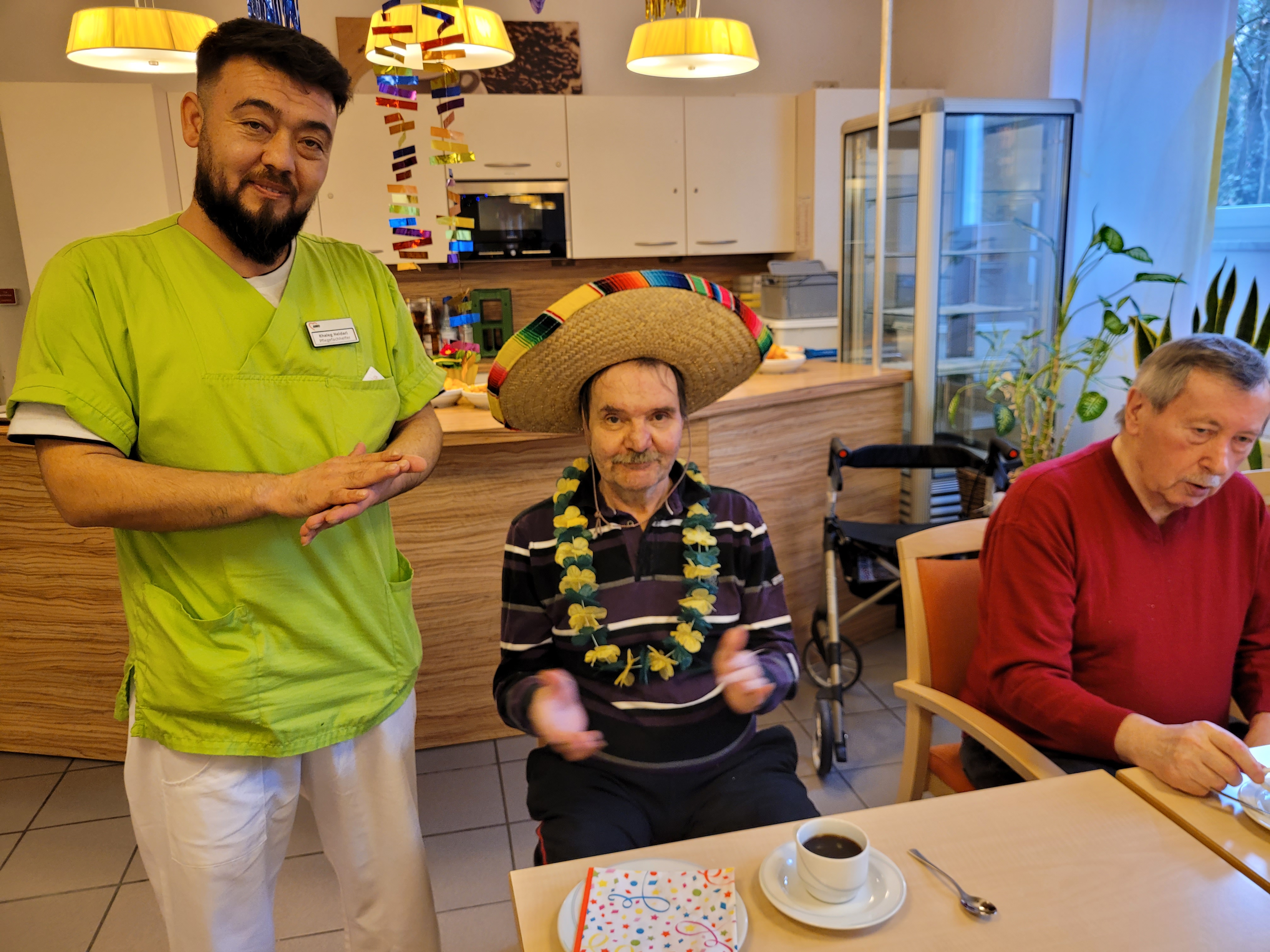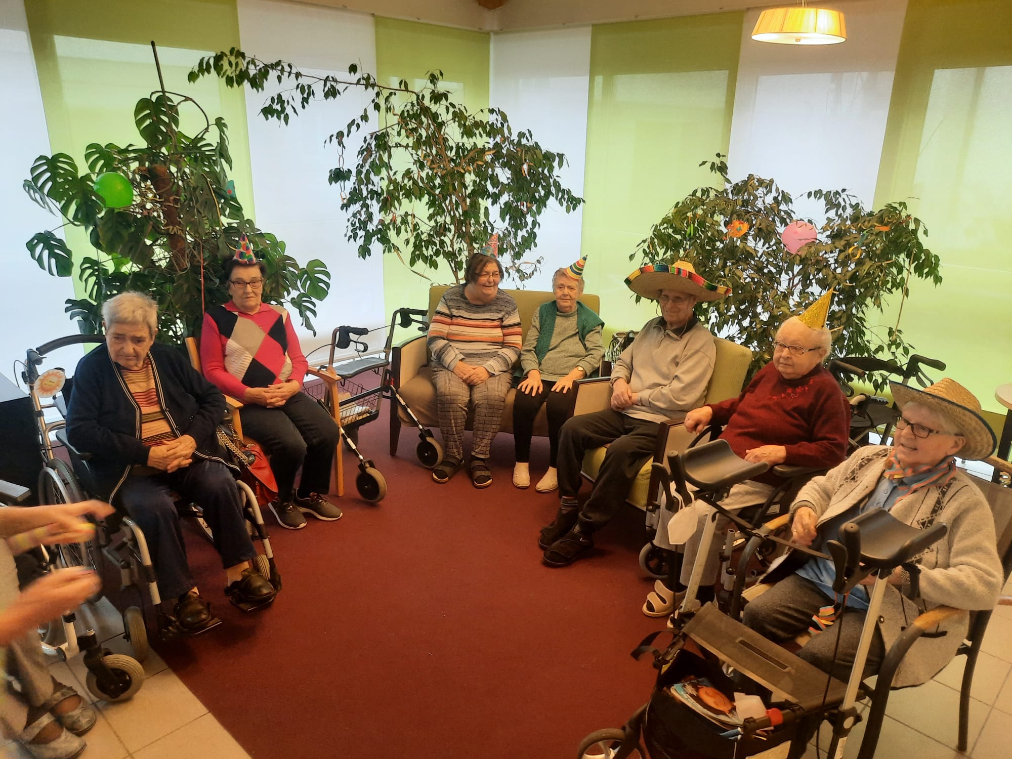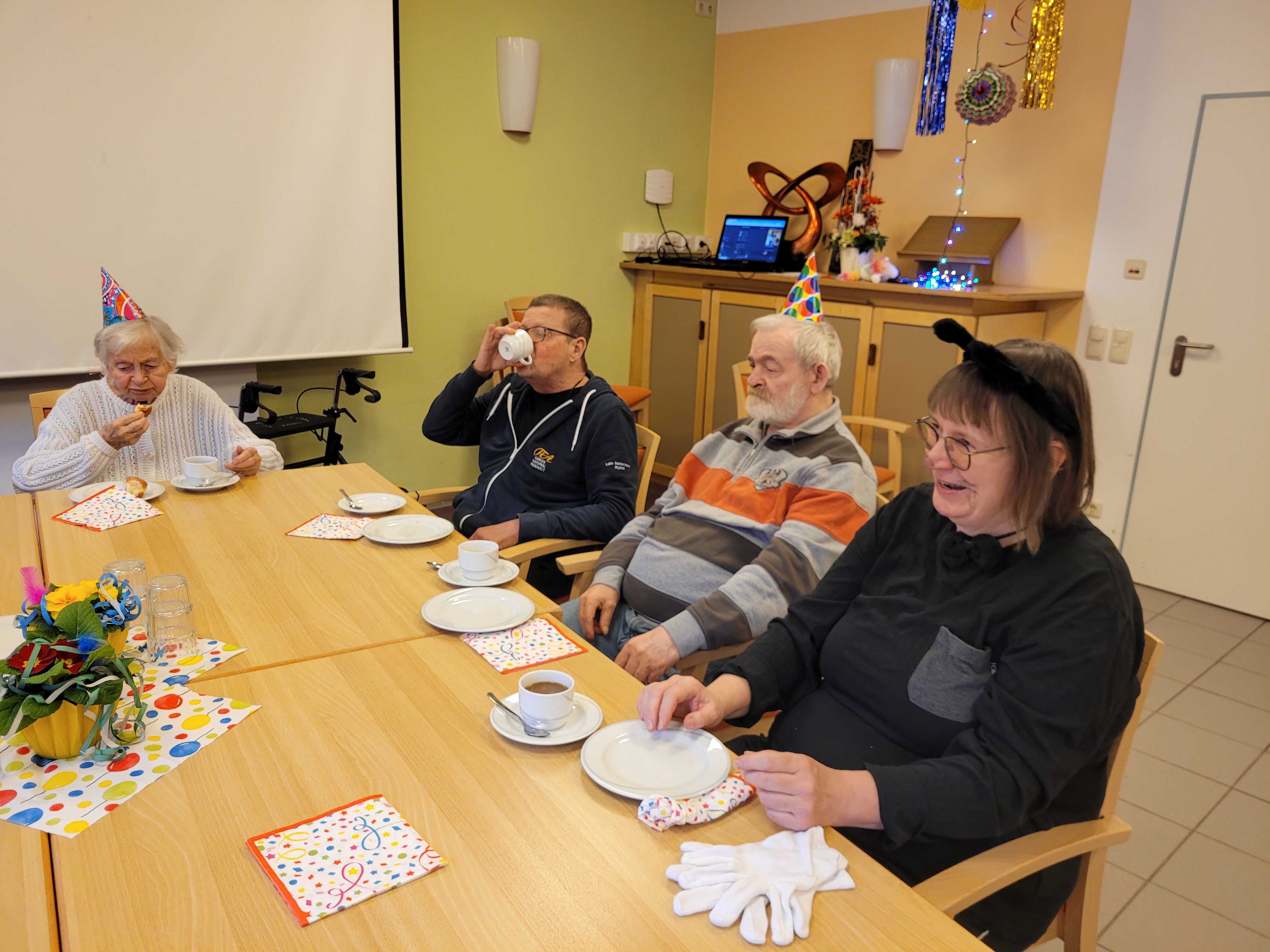 Alle Geburtstagskinder der Monate Dezember und Januar feierten zusammen in der Cafeteria. Es gab Kaffee und leckeren Kuchen bei launiger Unterhaltung durch die Betreuung.