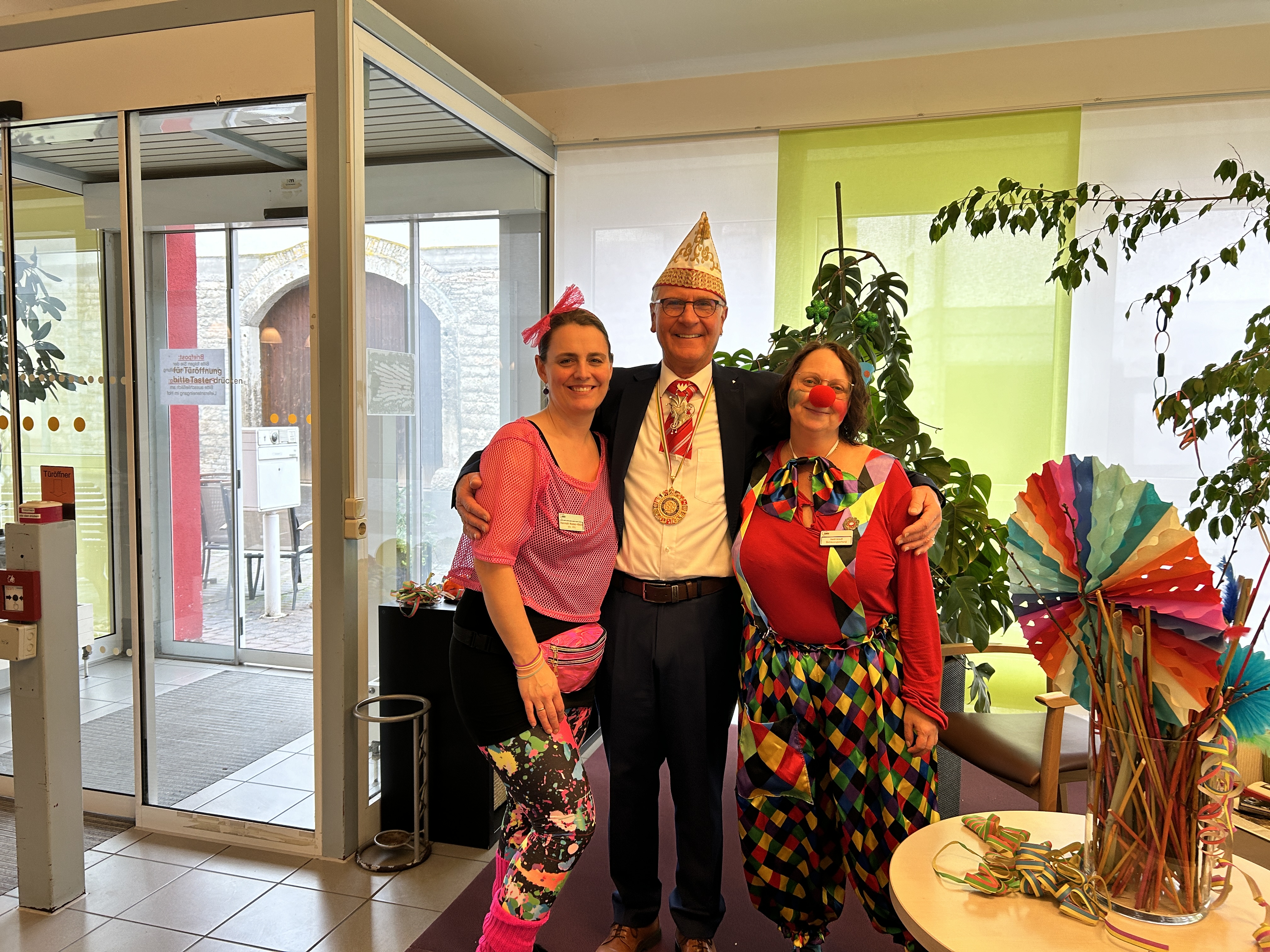 Es ist mittlerweile ja schon Tradition, dass an Weiberfasching die Frauen die Macht im Haus der Senioren übernehmen, so auch in diesem Jahr. Einrichtungsleiter Ludger Schuhmann wurde von einer Abordnung von Bewohnerinnen und Mitarbeiterinnen direkt beim Betreten des Haus abgefangen und ruckzuck war die Krawatte ab. Selbst einige Bewohner unterstützten die Frauen bei der Aktion. Es wurde gesungen, geschunkelt und gelacht und eine Polonaise durfte natürlich auch nicht fehlen! ?