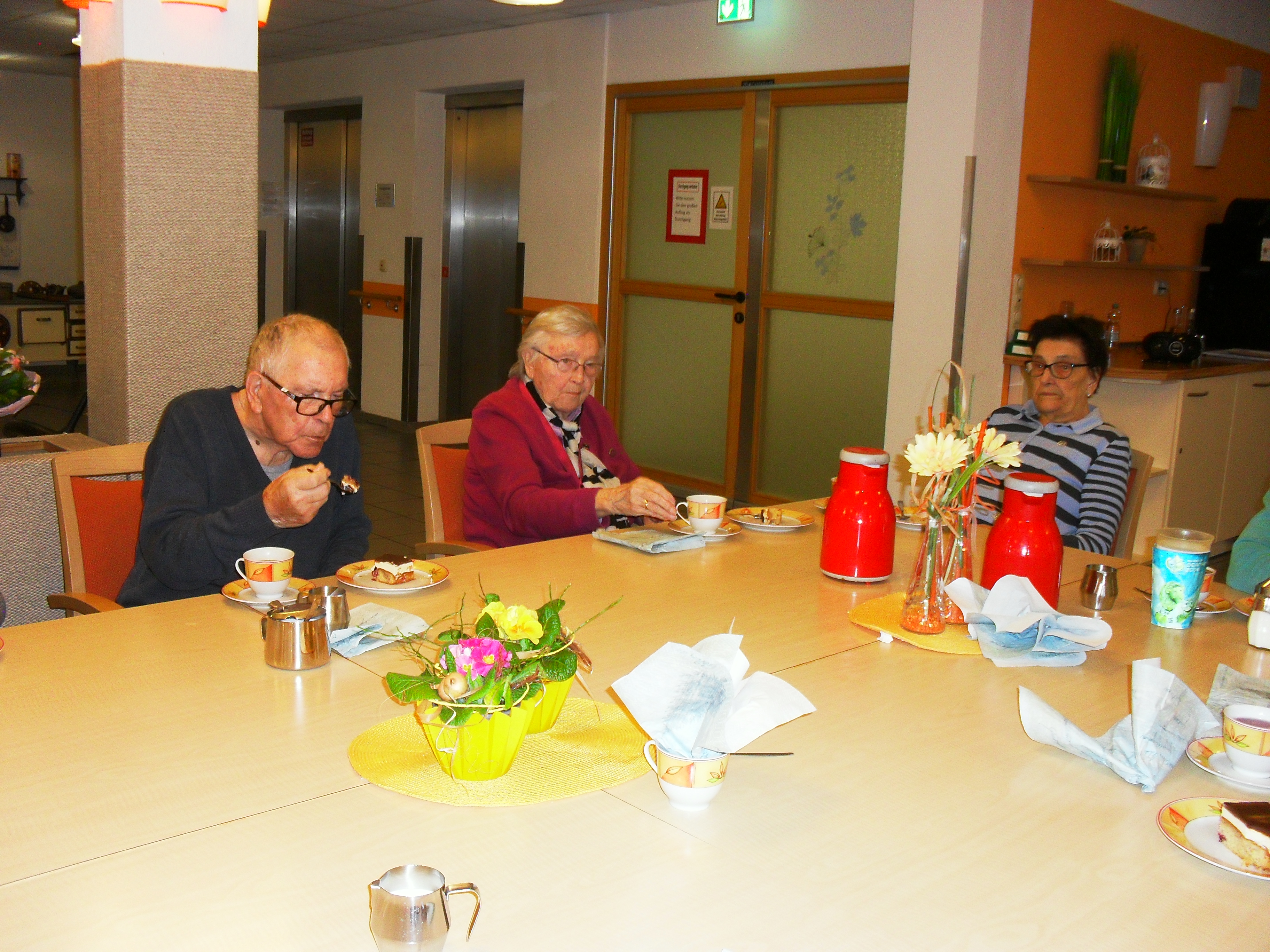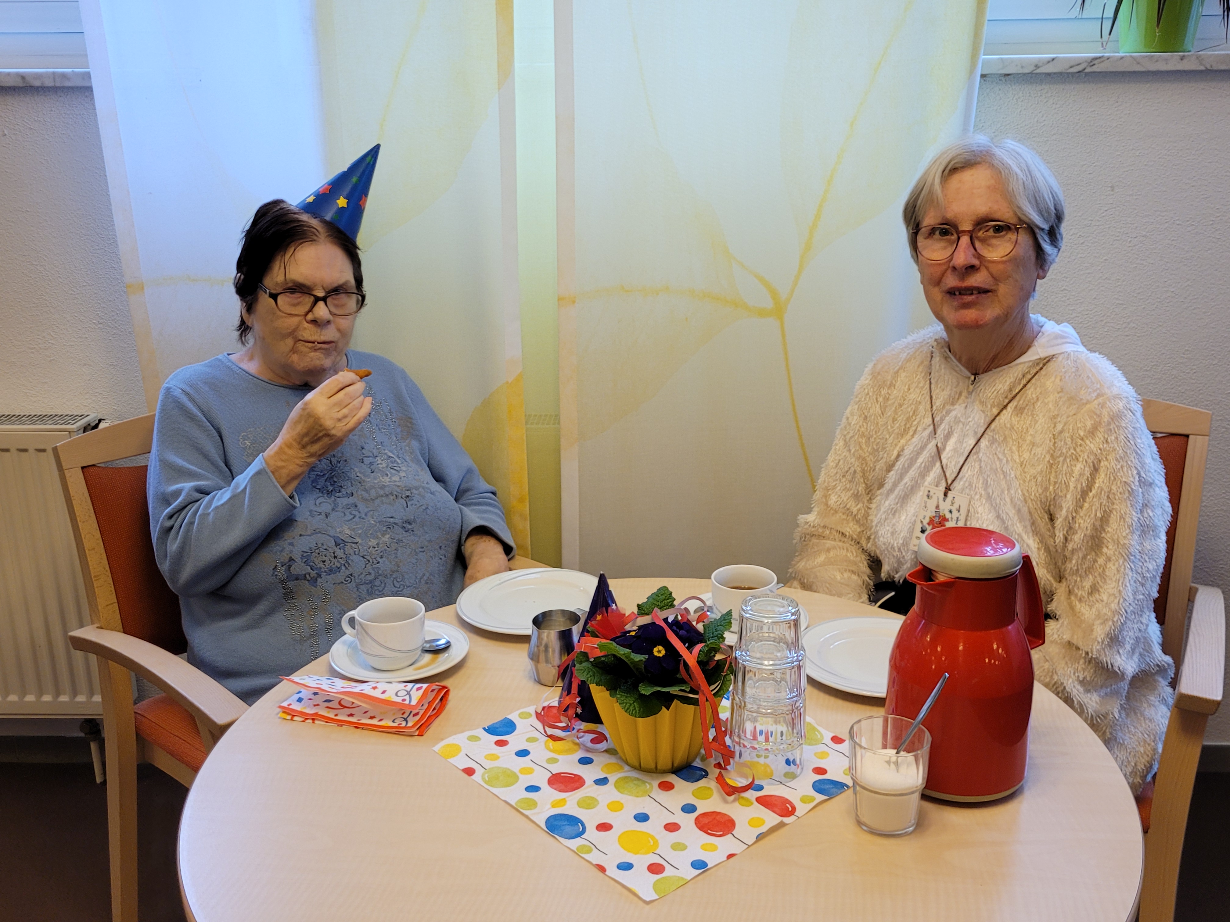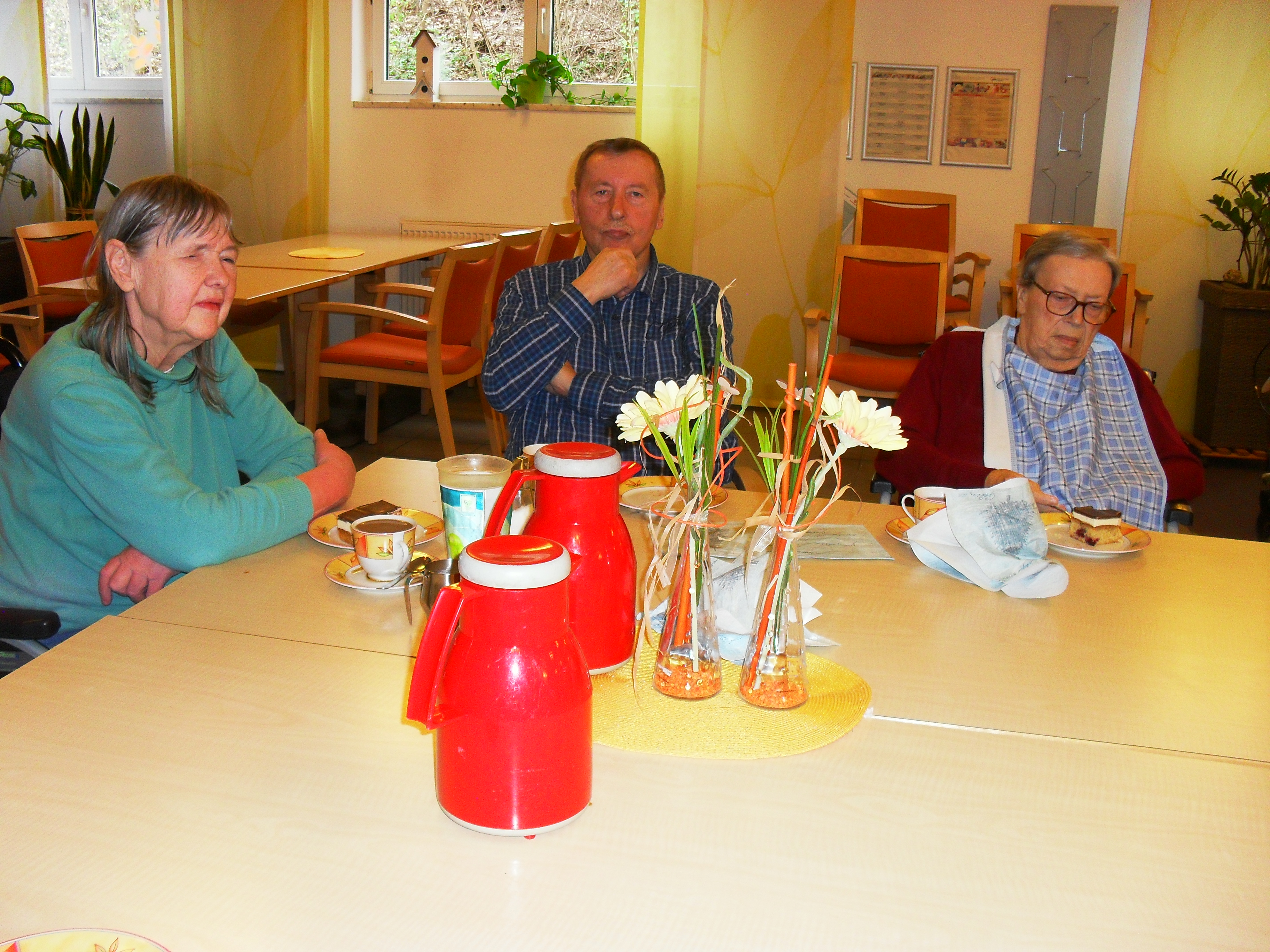 Im April waren alle Bewohnerinnen und Bewohnerinnen, die in den Monaten Februar und März Geburtstag hatten, zum Geburtstagskaffee eingeladen. In großer Runde wurde bei Torte und Kaffee gefeiert.