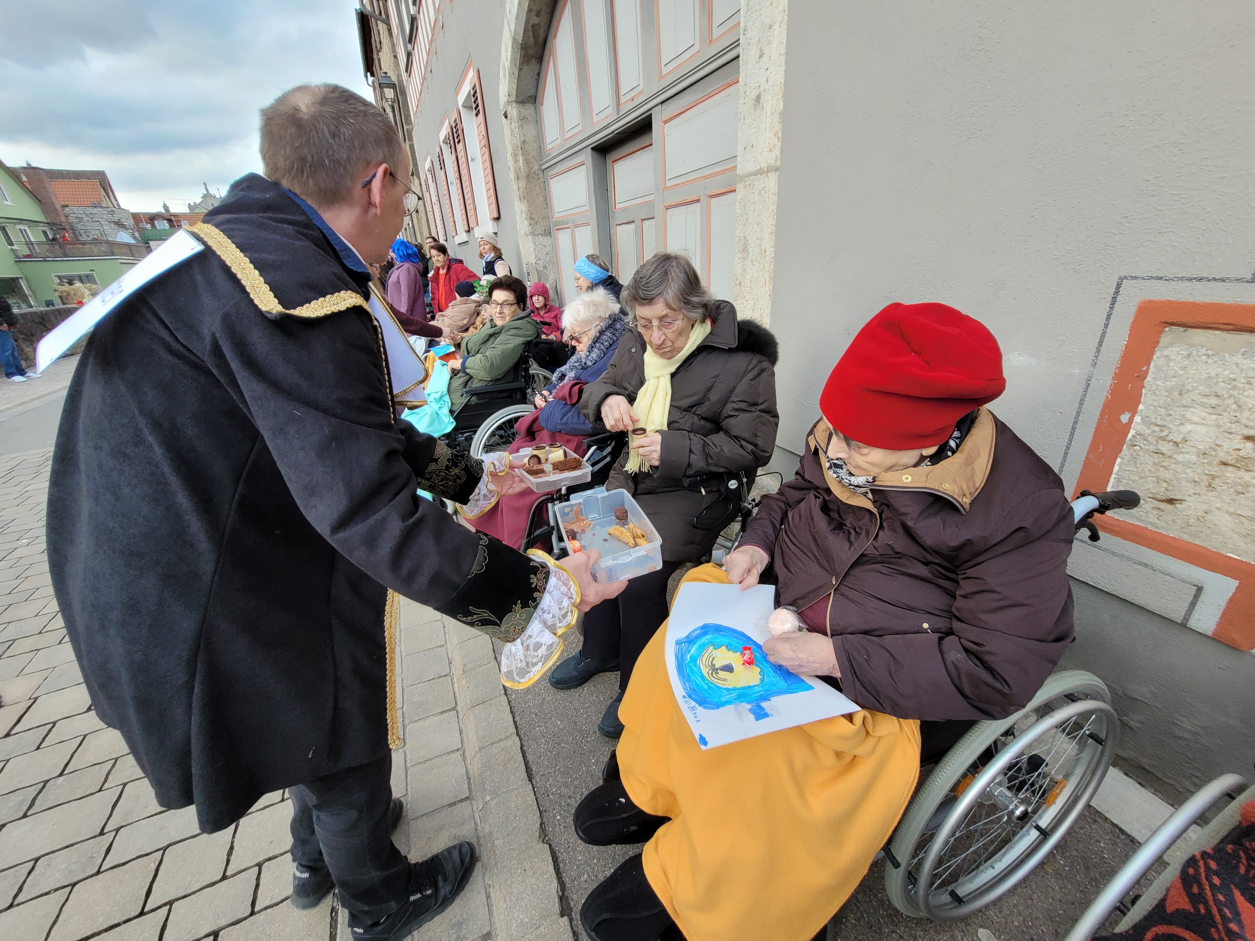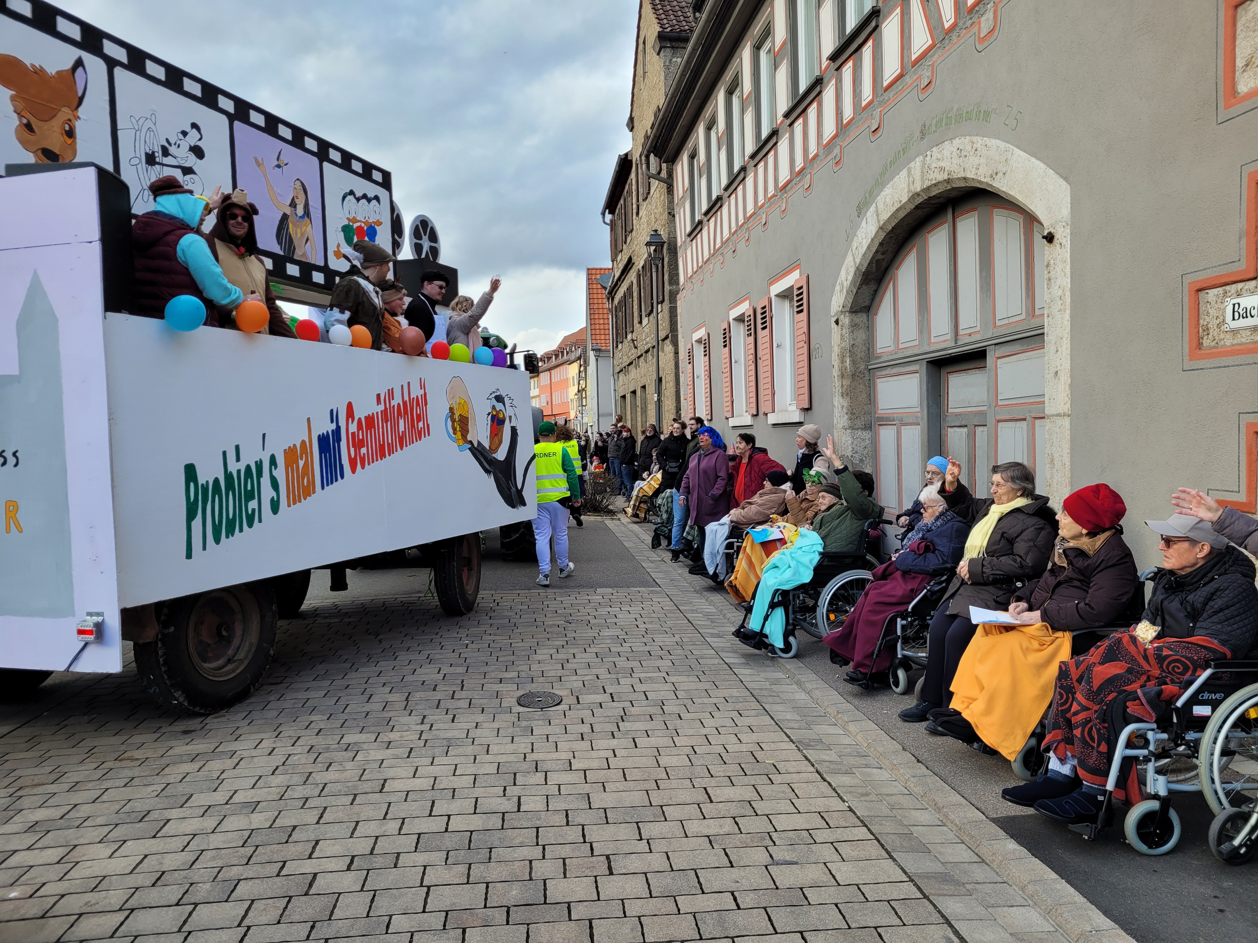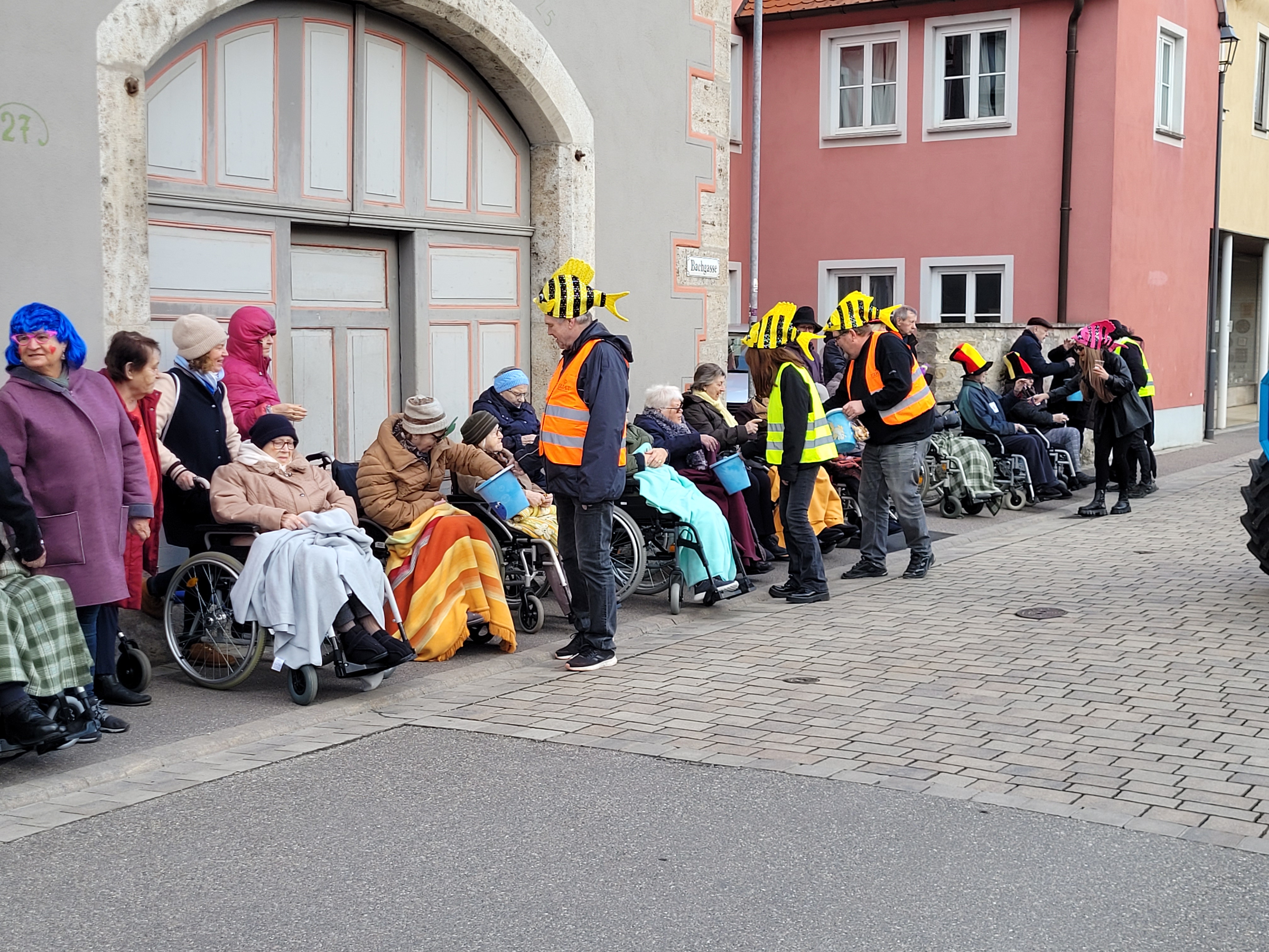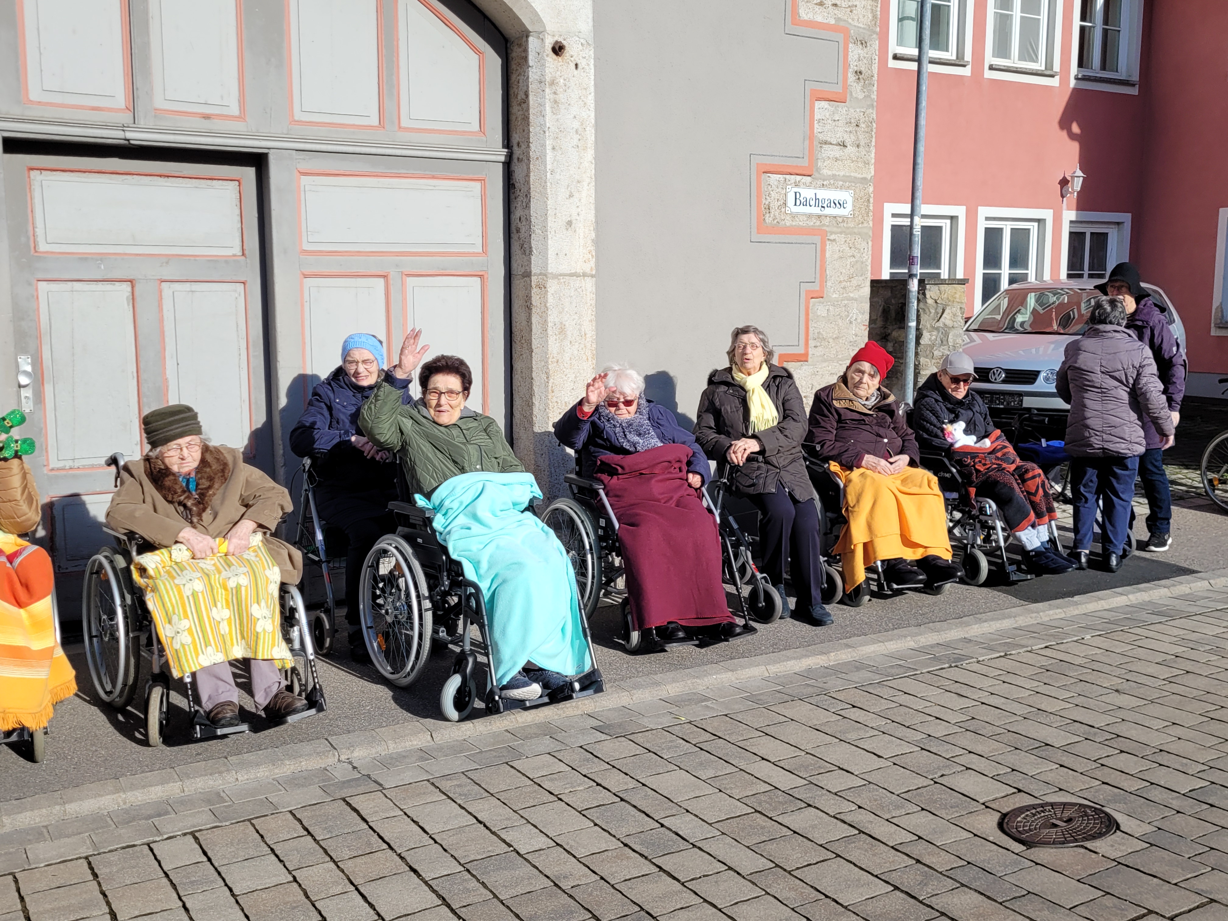 Bei strahlendem Sonnenschein fiel es den Seniorinnen und Senioren aus dem Haus der Senioren nicht schwer, auf den Marktbreiter Faschingsumzug zu warten. Wir haben beim Warten schon Stimmung gemacht, "Helau" geübt und gesungen. Viel freudige Gesichter gab es dann, als der Zug endlich kam und die Bonbons und Süßigkeiten nicht geworfen, sondern direkt in die Hand gegeben wurden ?. Ganz besonders erfreulich war es, dass sich auch in diesem Jahr wieder spontan "fremde" Leute angeboten haben, alle Rollstühle wieder ins Haus der Senioren zurück zu fahren.