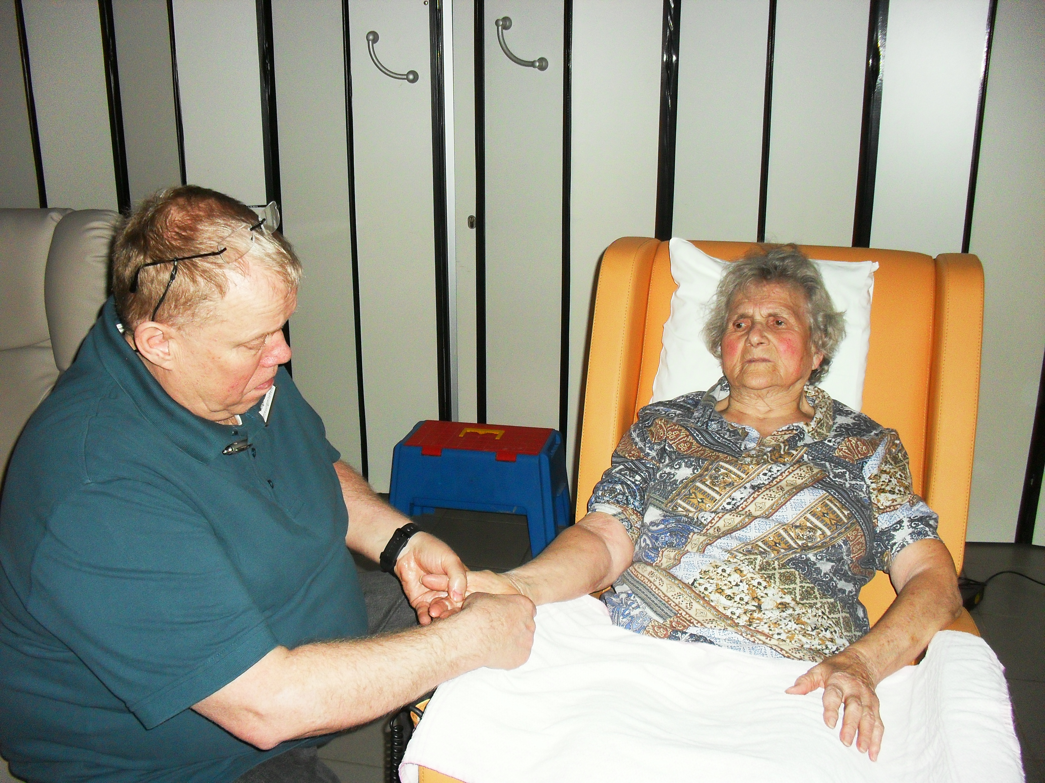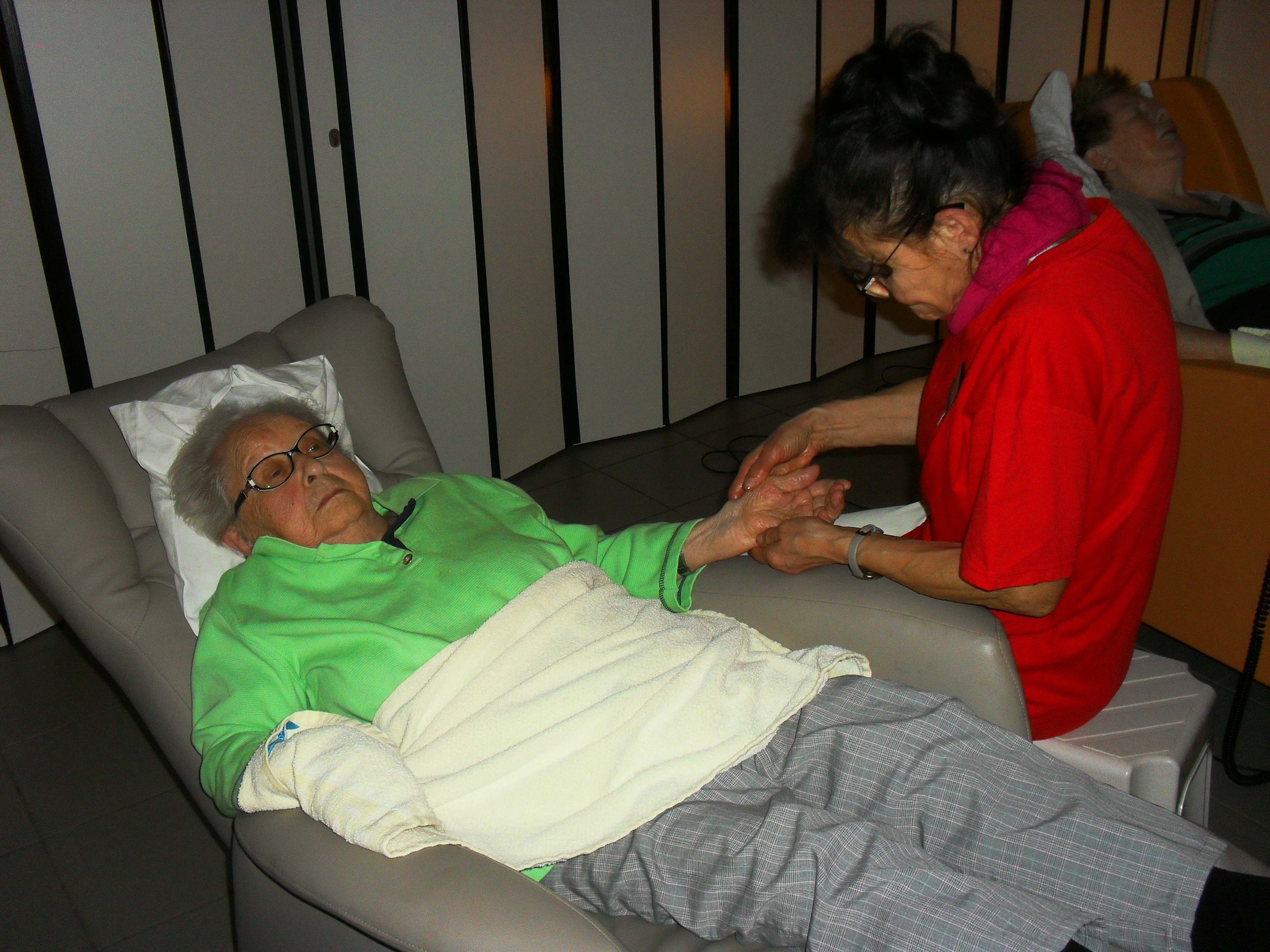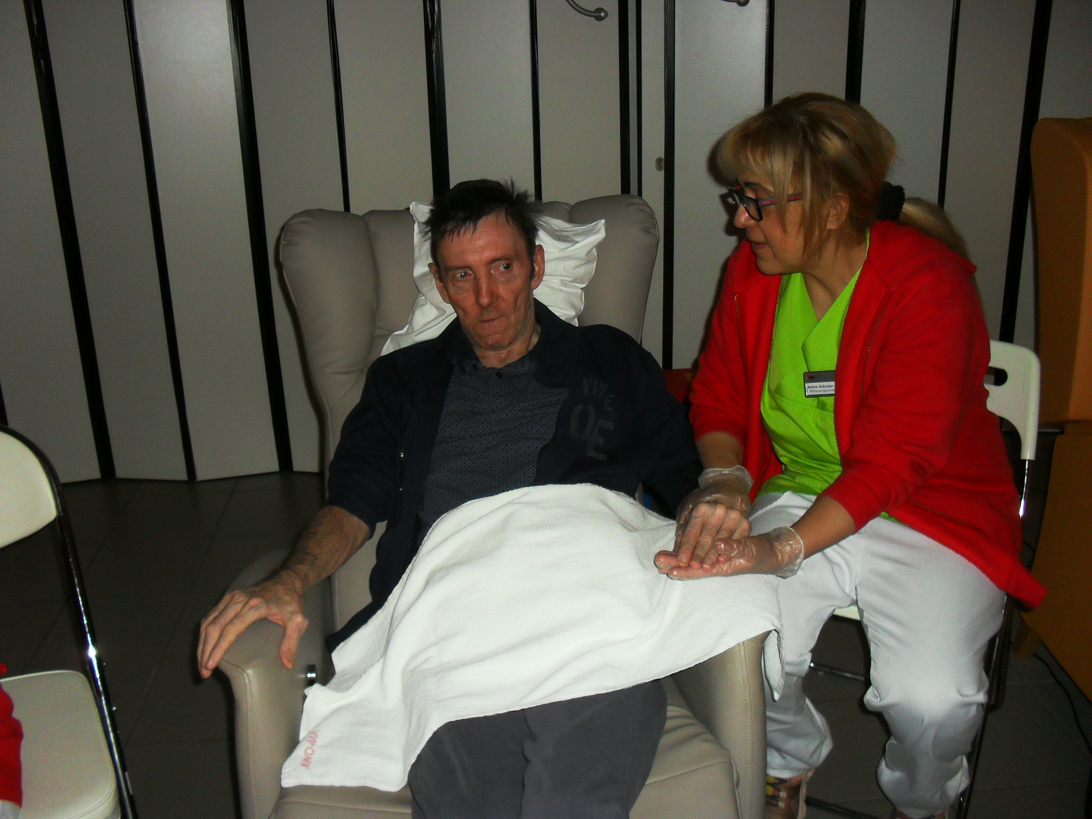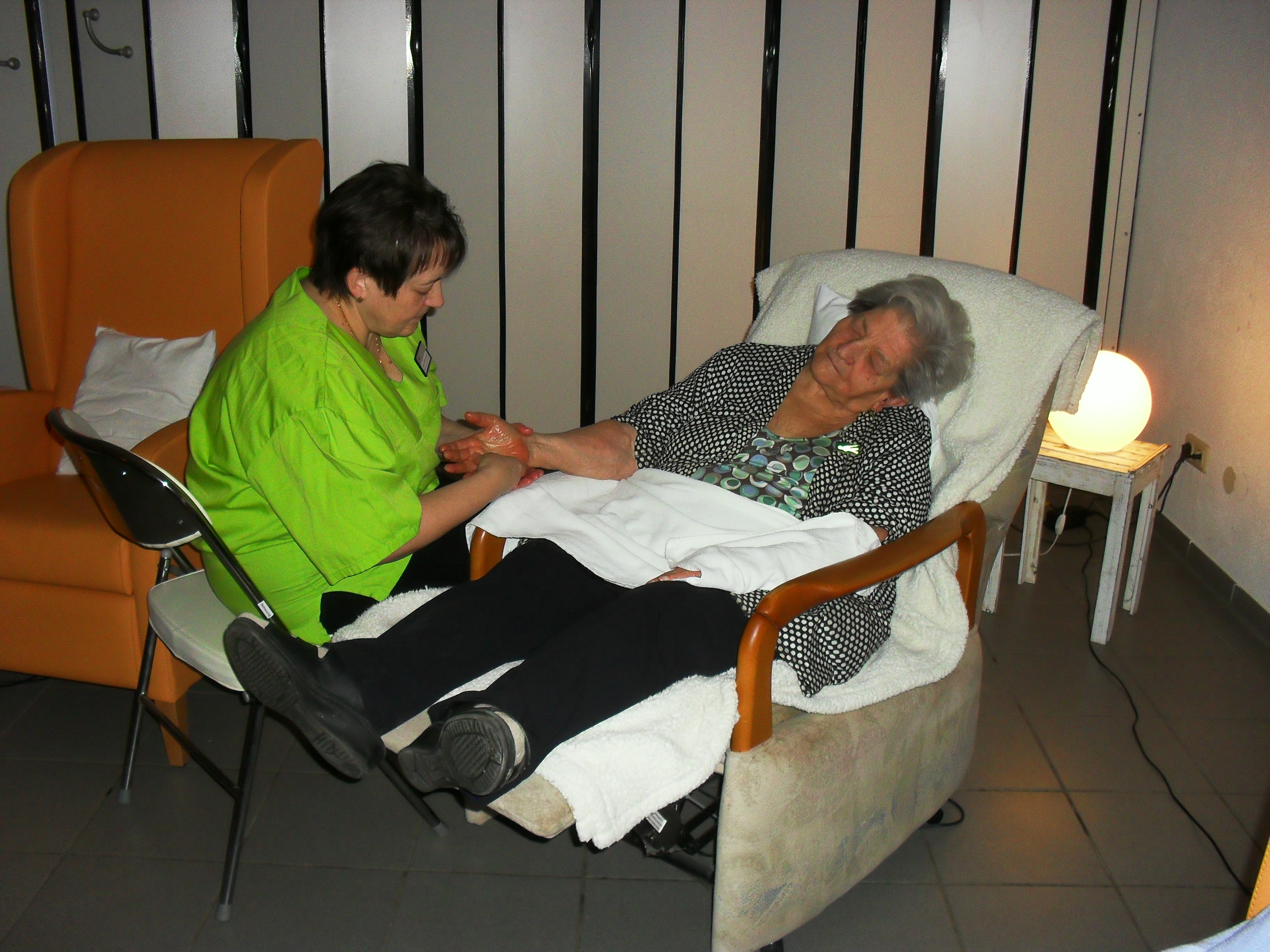 Zweimal im Jahr finden im Haus der Senioren die Wellnesstage für die Bewohner*innen und die Tagespflegegäste statt. Dieses Angebot wird jedesmal mit Begeisterung angenommen, manche kommen sogar mehrfach. Alle genießen die angebotenen Handmassagen, wer mag bekommt auch eine Kopfmassage. Ab und zu wirkt die Behandlung so entspannend, dass die Senior*innen dabei einschlafen. Ein großes Dankeschön an das Team der Betreuung, das dieses Event jedesmal mit viel Personal- und Materialaufwand auf die Beine stellt.
