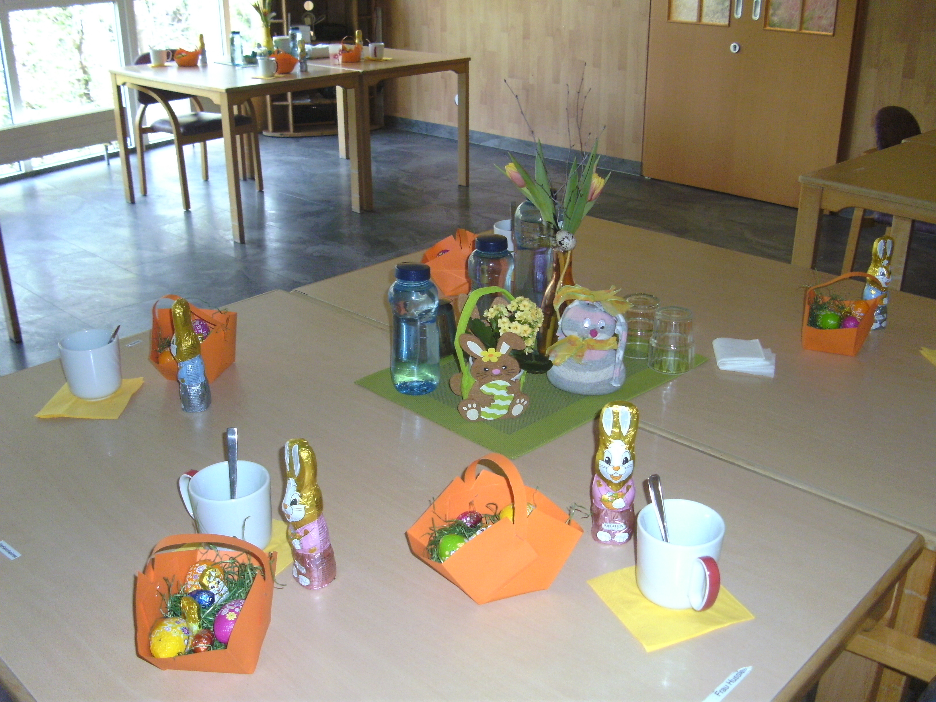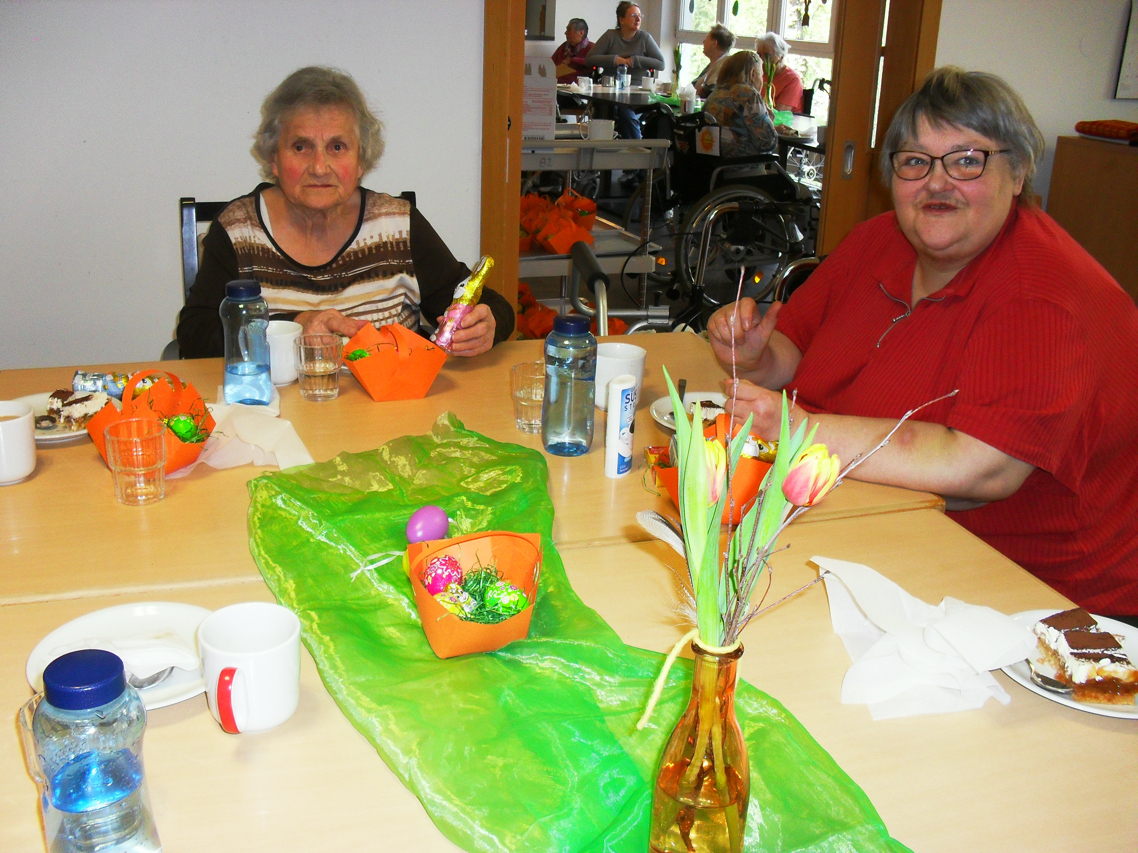 Schon Tage vorher bereiteten sich die Bewohnerinnen und Bewohner zusammen mit den Mitarbeiterinnen und Mitarbeitern der Betreuung auf die Osterfeiertage vor. Es wurde gebastelt, gespielt, dekoriert und gebacken. Zusätzlich fand noch ein gemeinsamer Gottesdienst statt.