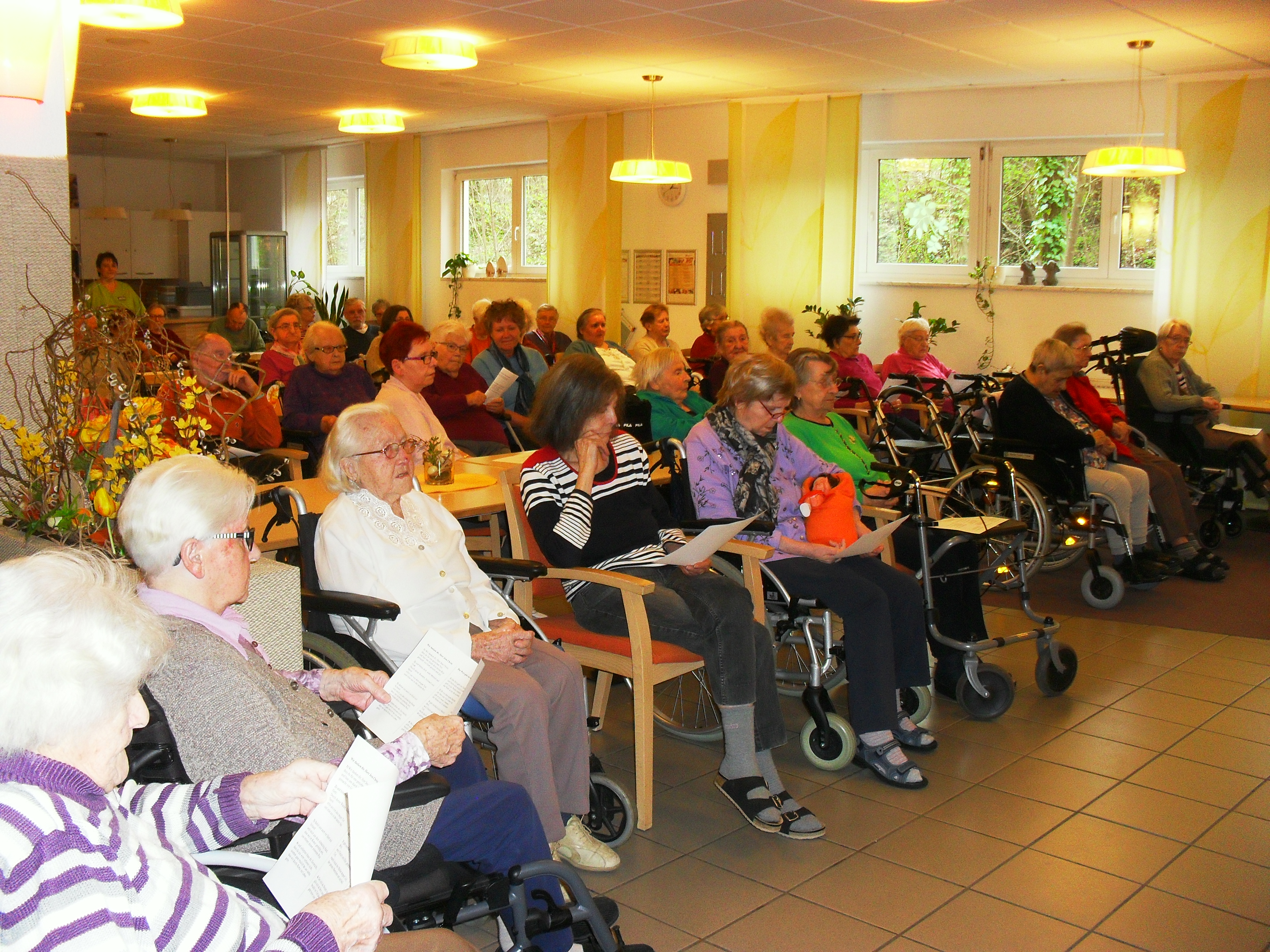 Auch in diesem Jahr besuchten sehr viele Seniorinnen und Senioren die vom Team der Betreuung angebotene Erntedankfeier. Der Tisch mit den Erntedankgaben war reichlich gedeckt und alles war wunderschön arrangiert. Vielen Dank für die große Mühe an unsere Blumenfee Christine Schilling und an die Hauswirtschaftsleitung Birgit Wirsing. Es ist unglaublich, wie toll der Gabentisch aussah!