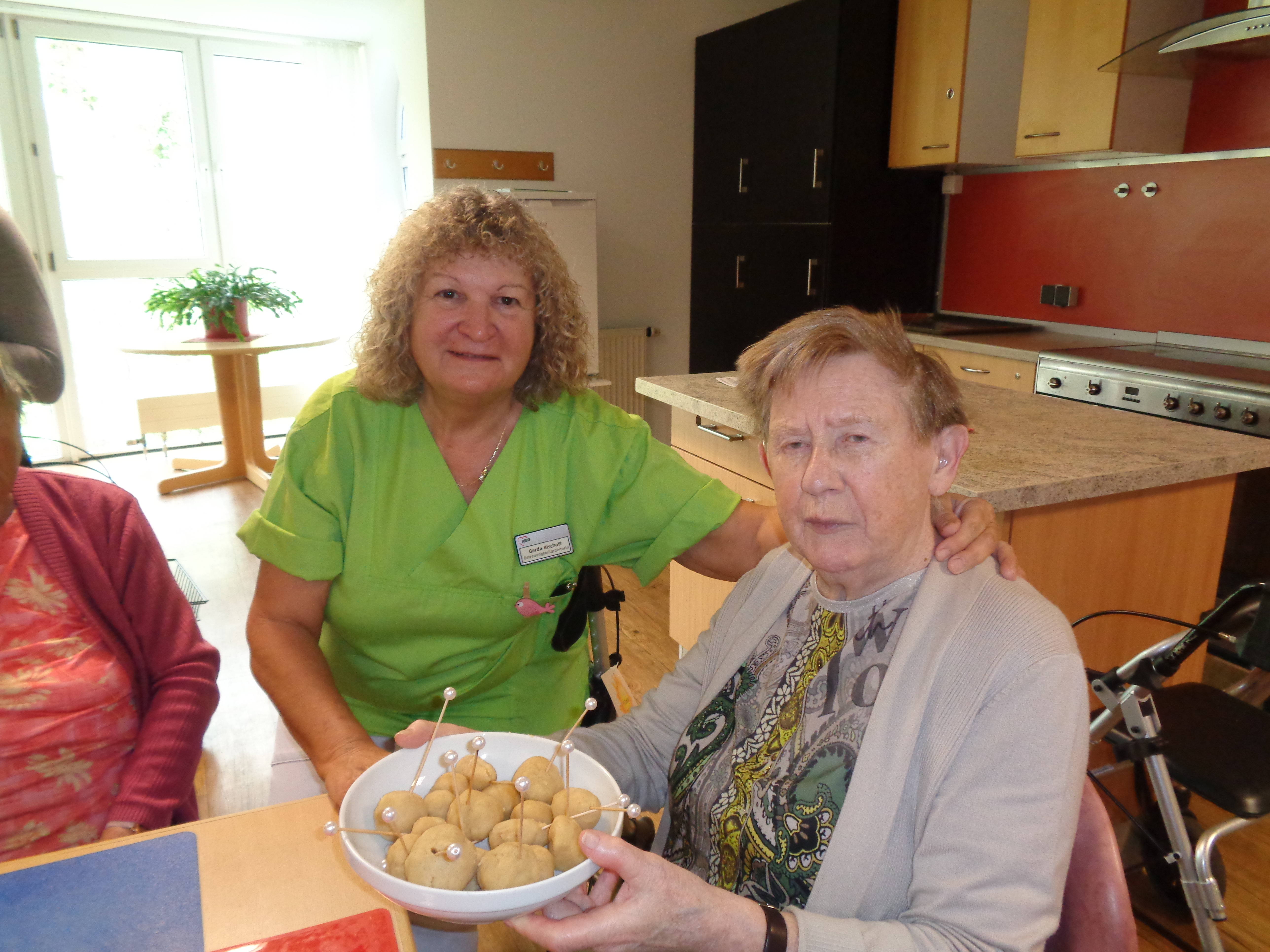 Beim gemeinsamen Kochen von Apfelmus hatten alle viel Spaß. Es wurden Rezepte ausgetauscht, über Apfelsorten gesprochen und wie früher die Apfelernte vor sich ging. Natürlich wurde der Apfelbrei, wie es hier in der Gegend heißt, im Anschluss von allen gekostet. Danach spielten die Bewohnerinnen und Bewohner noch ein paar Runden Mensch ärgere dich nicht und ließen so den Nachmittag ausklingen.