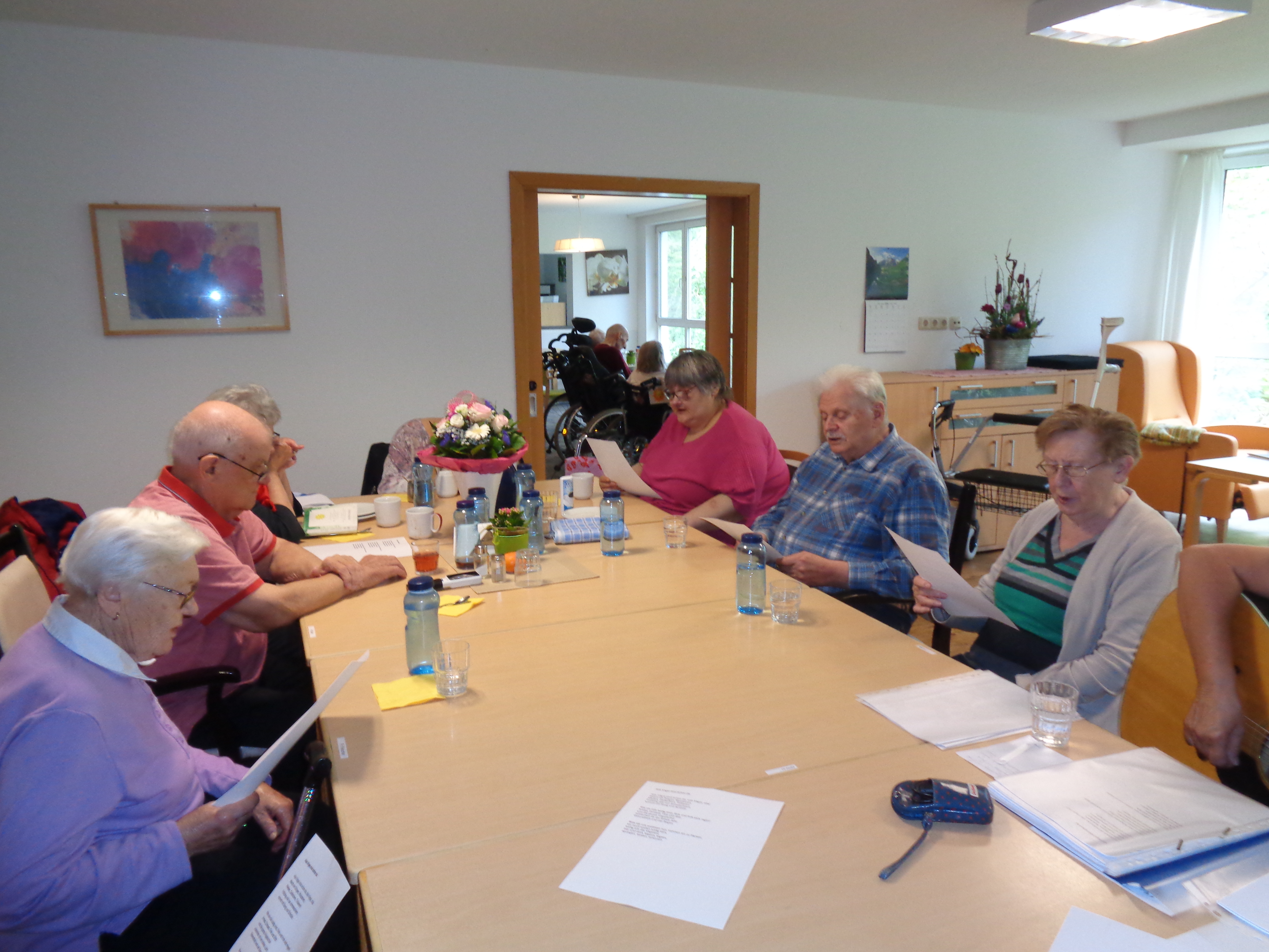 Am 02.05.2024 begrüßten die Bewohnerinnen und Bewohner mit einer gemeinsamen Maifeier den Wonnemonat Mai. Musikalisch umrahmt wurde das Fest von Frau Müller, die den Gesang auf dem Keyboard begleitete. Es wurden Gedichte vorgelesen und von Maifeiern in früheren Zeiten erzählt.
