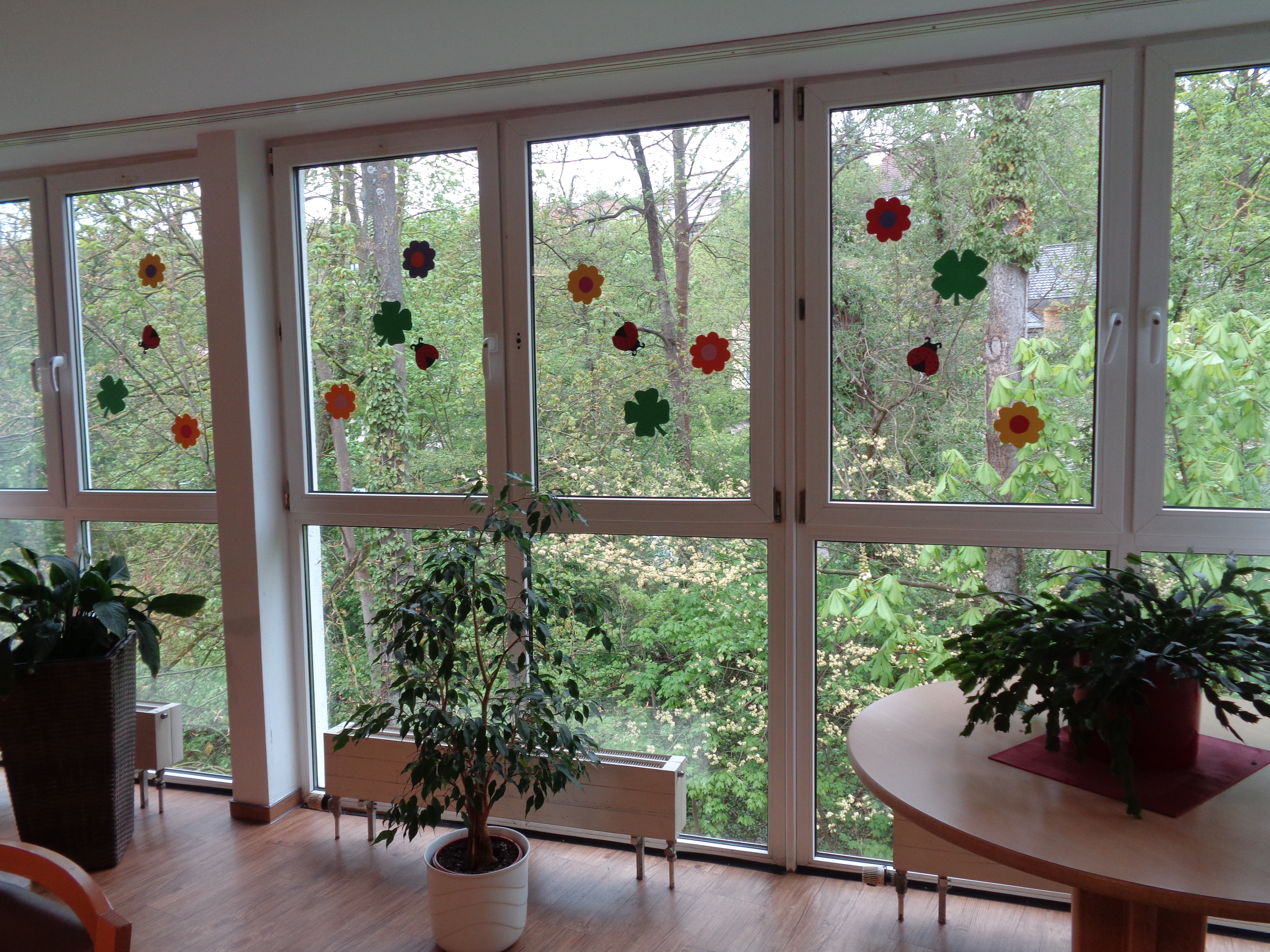 Fleißige Hände sorgten dafür, dass die Fenster frühlingshaft dekoriert werden konnten. Mit viel Geduld und Geschick wurden Käfer, Bienen und anderes ausgeschnitten und zusammengeklebt.
