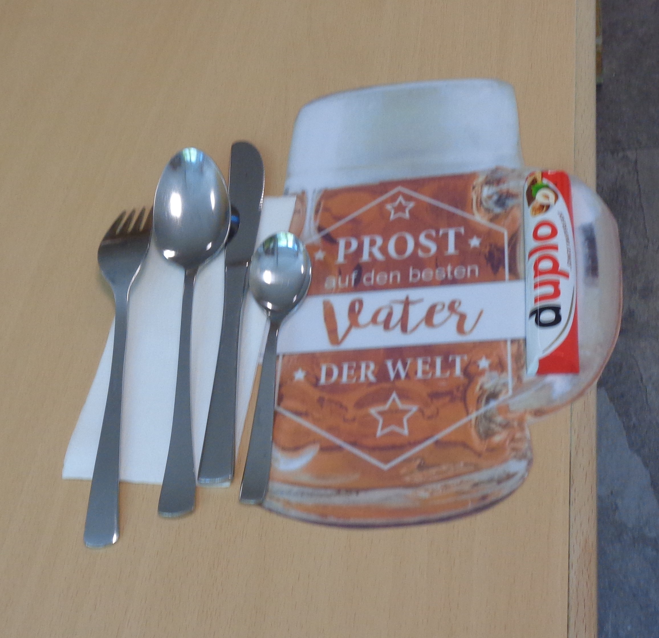 Mal in einer recht ungeöhnlichen Reihenfolge wurde in diesem Jahr der Vatertag vor dem Muttertag gefeiert. Um den Männern ein schönes Fest zu bereiten, wurde angepasste Dekoration gebastelt. Es gab Kaffee und Torte für alle, auch die Damen des Hauses.