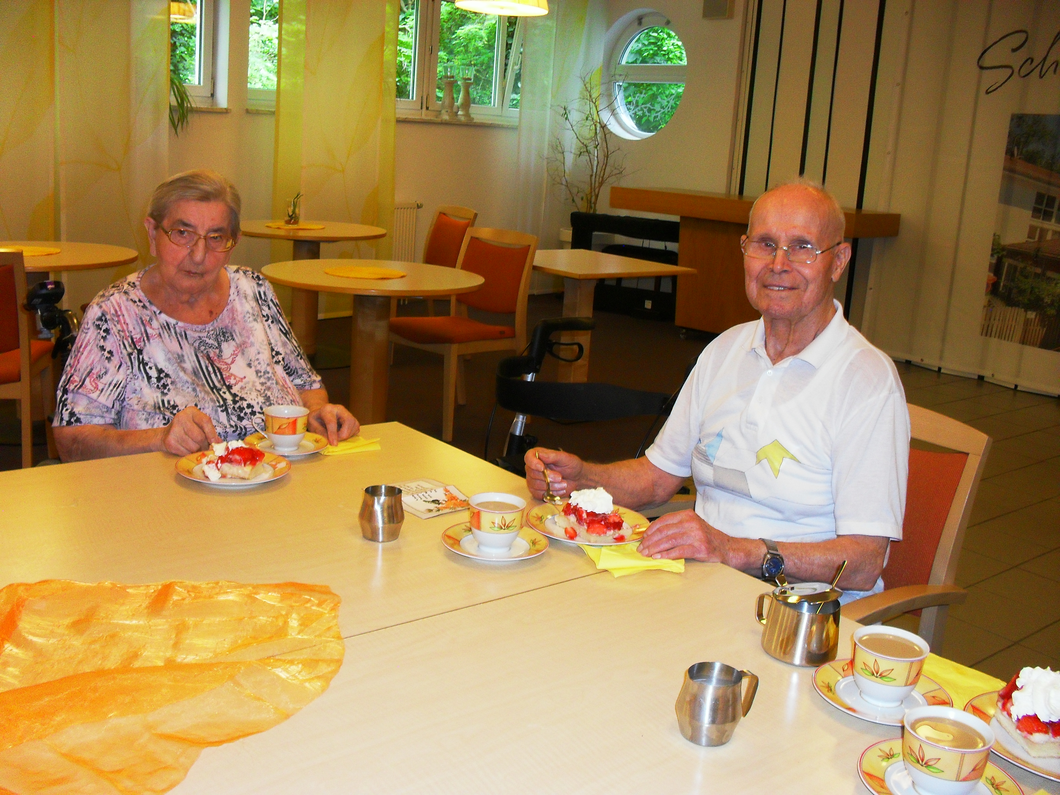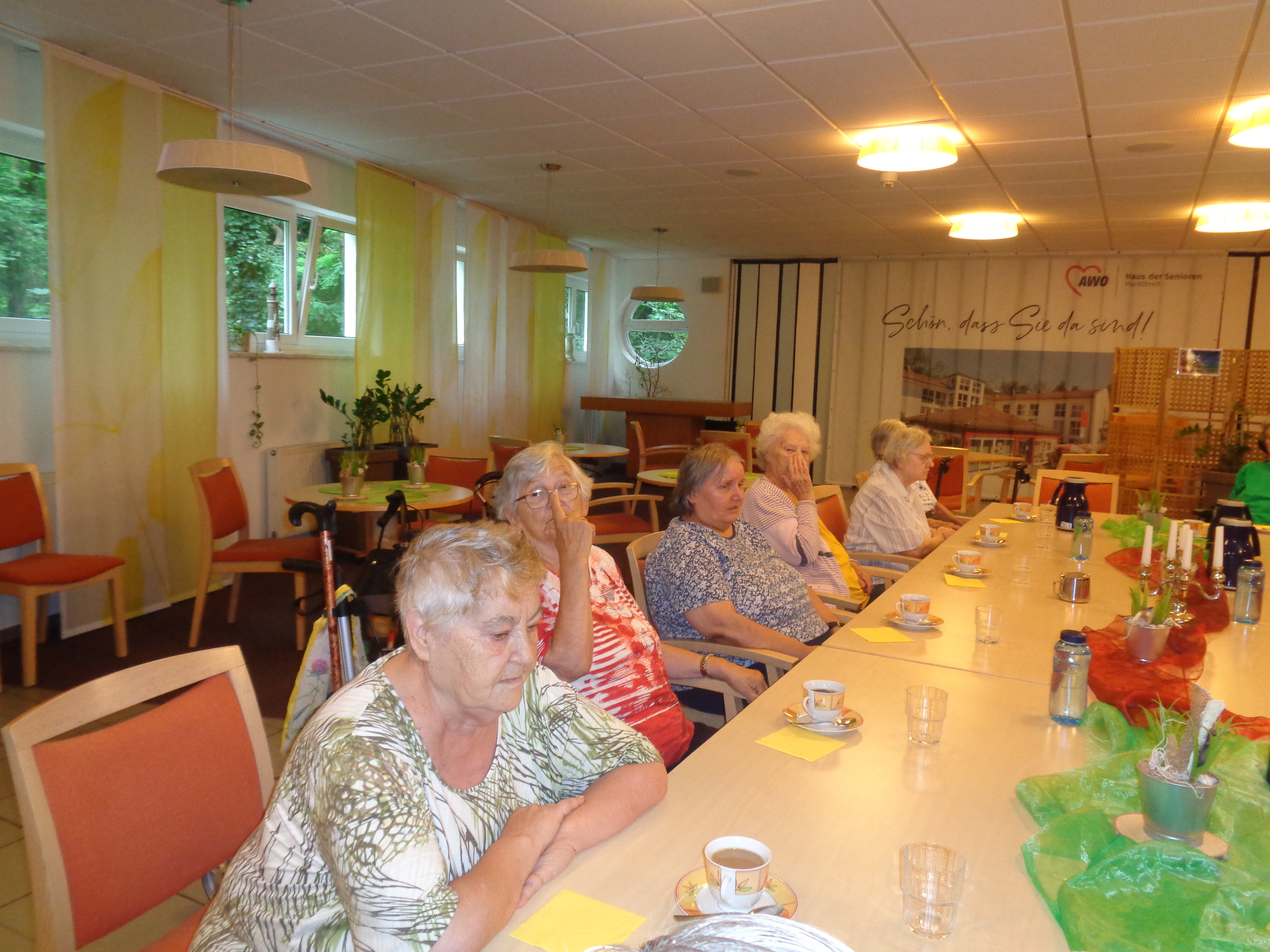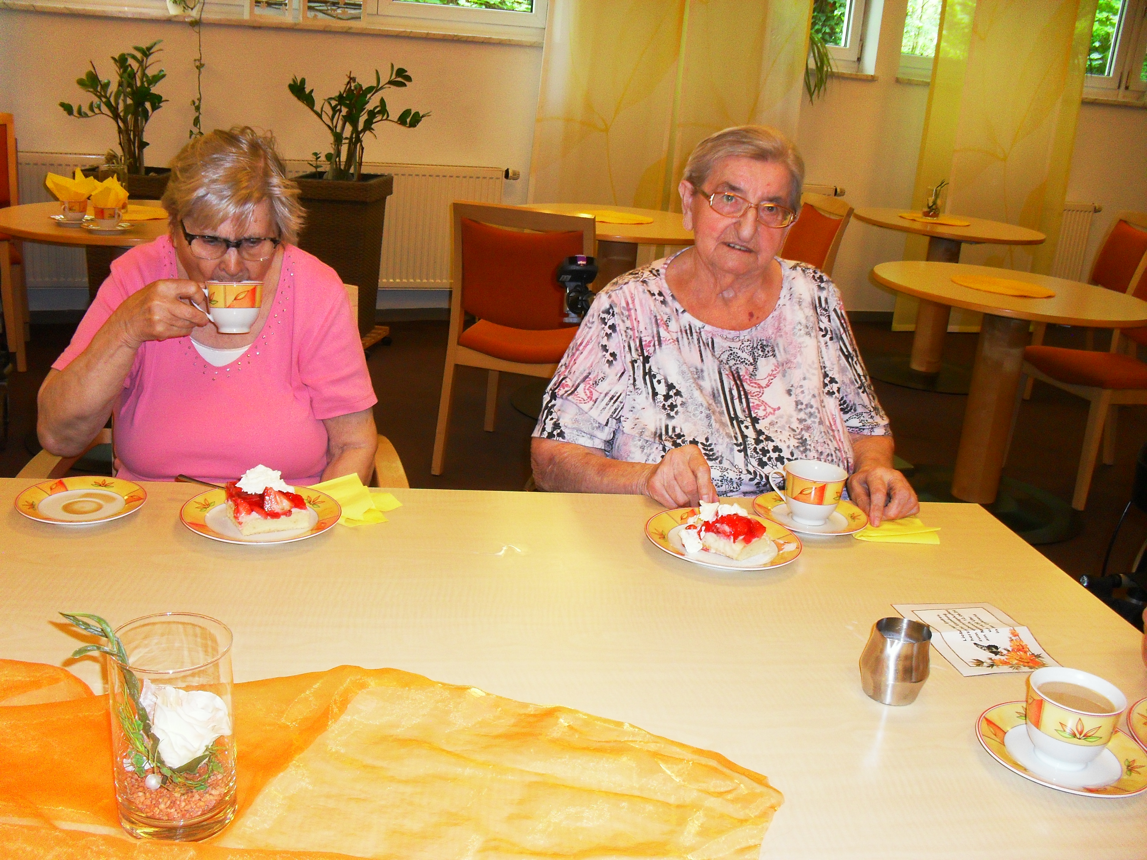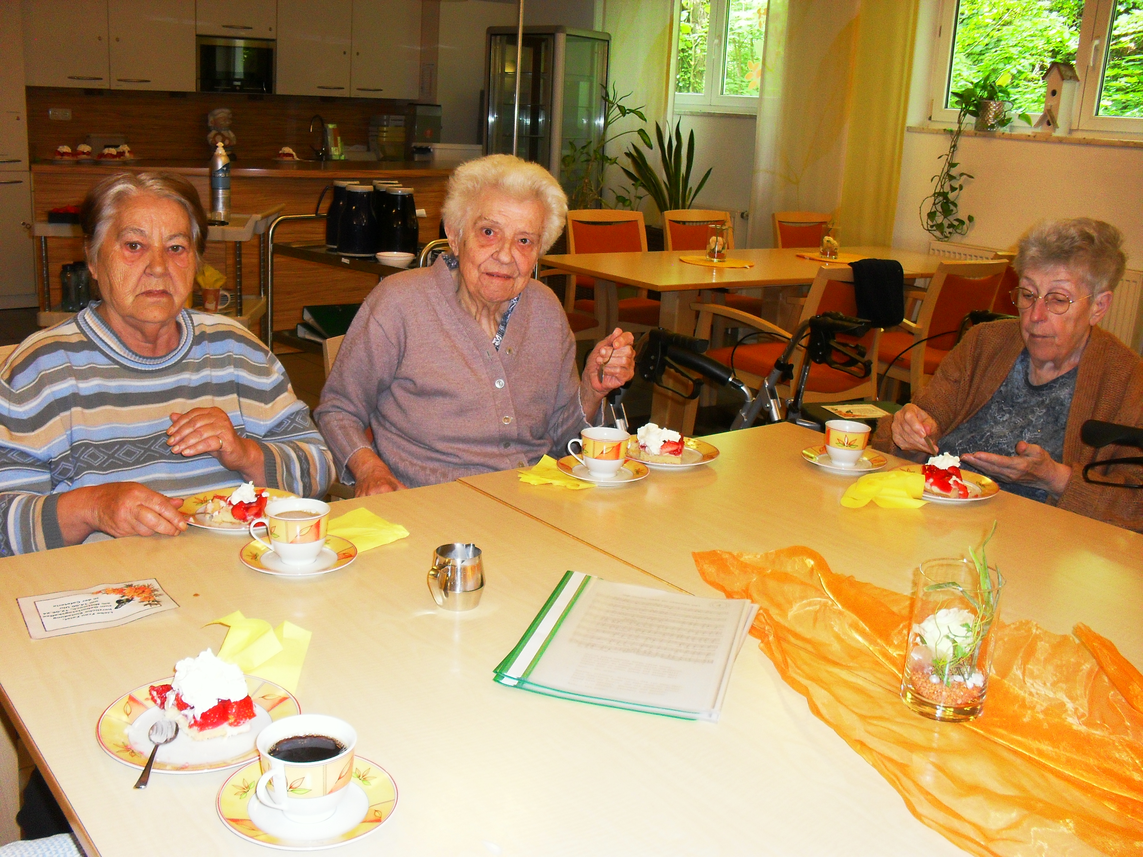 Anfang Juli war es wieder so weit: alle Geburtstagskinder der vorherigen zwei Monate, also diesmal Mai und Juni, waren zum gemeinsamen Geburtstagskaffee eingeladen. Es wurde viel geschwätzt und erzählt, gemeinsame Erinnerungen ausgetauscht und natürlich der leckere Kuchen sowie das schöne Ambiente genossen.