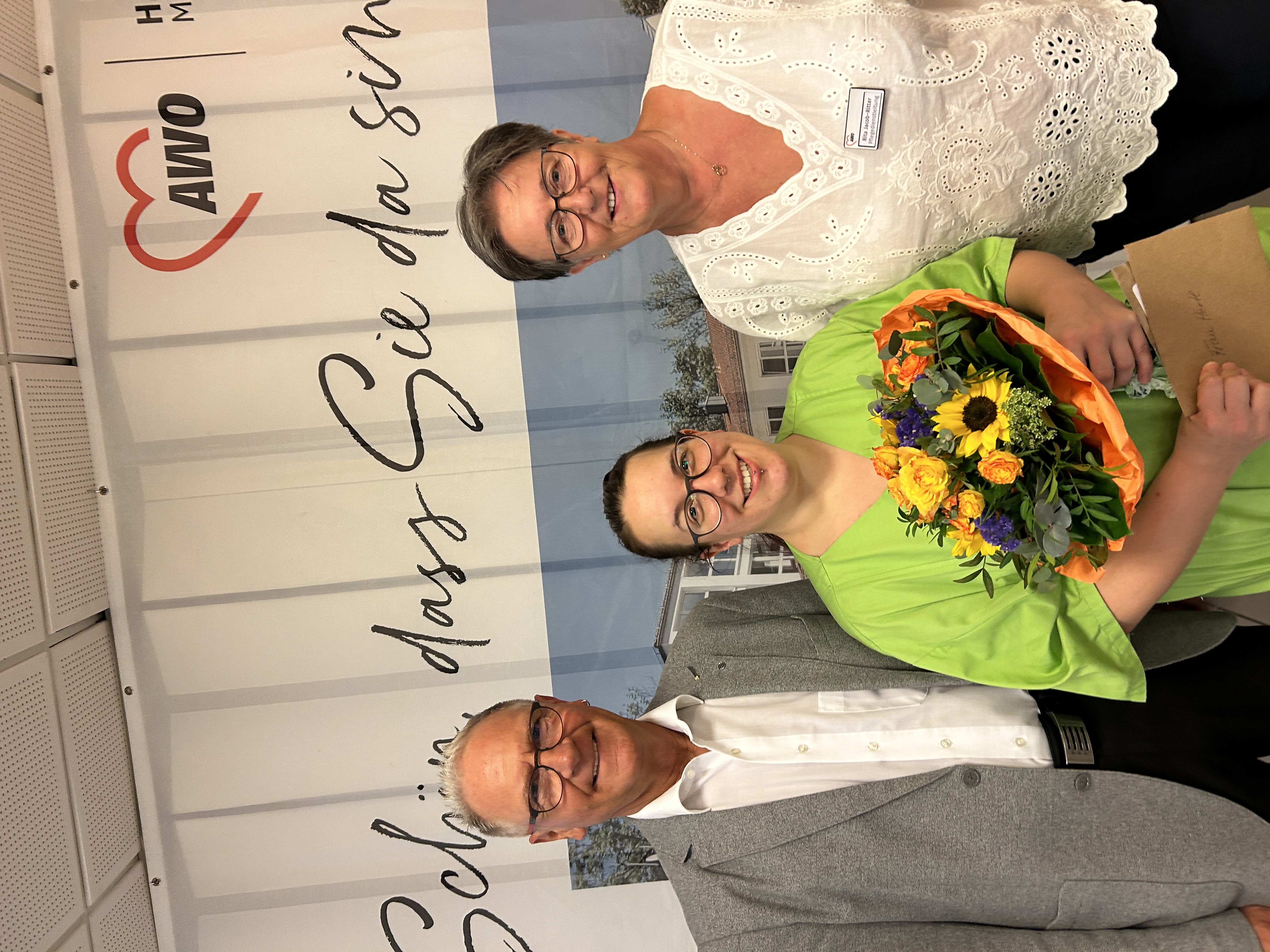 von links nach rechts: Einrichtungsleiter Ludger Schuhmann, Sarah Hertl, Pflegedienstleitung Rita Jacob-Ritter