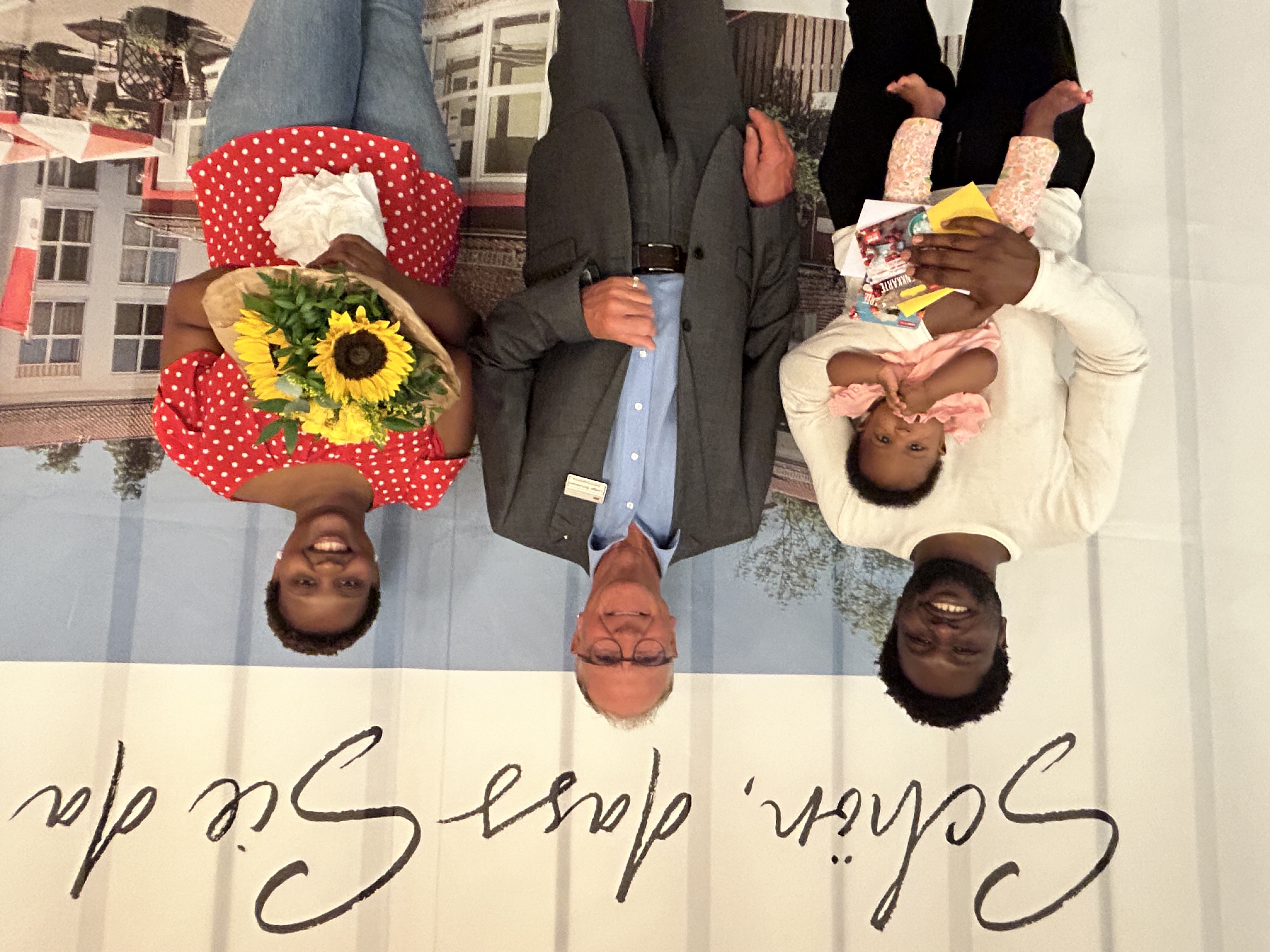 von links nach rechts: der stolze Papa, Einrichtungsleiter Ludger Schuhmann, Rose Pendael von links nach rechts: Einrichtungsleiter Ludger Schuhmann, Beate Binder mit ihrem Sohn, Pflegedienstleitung Rita Jacob-Ritter