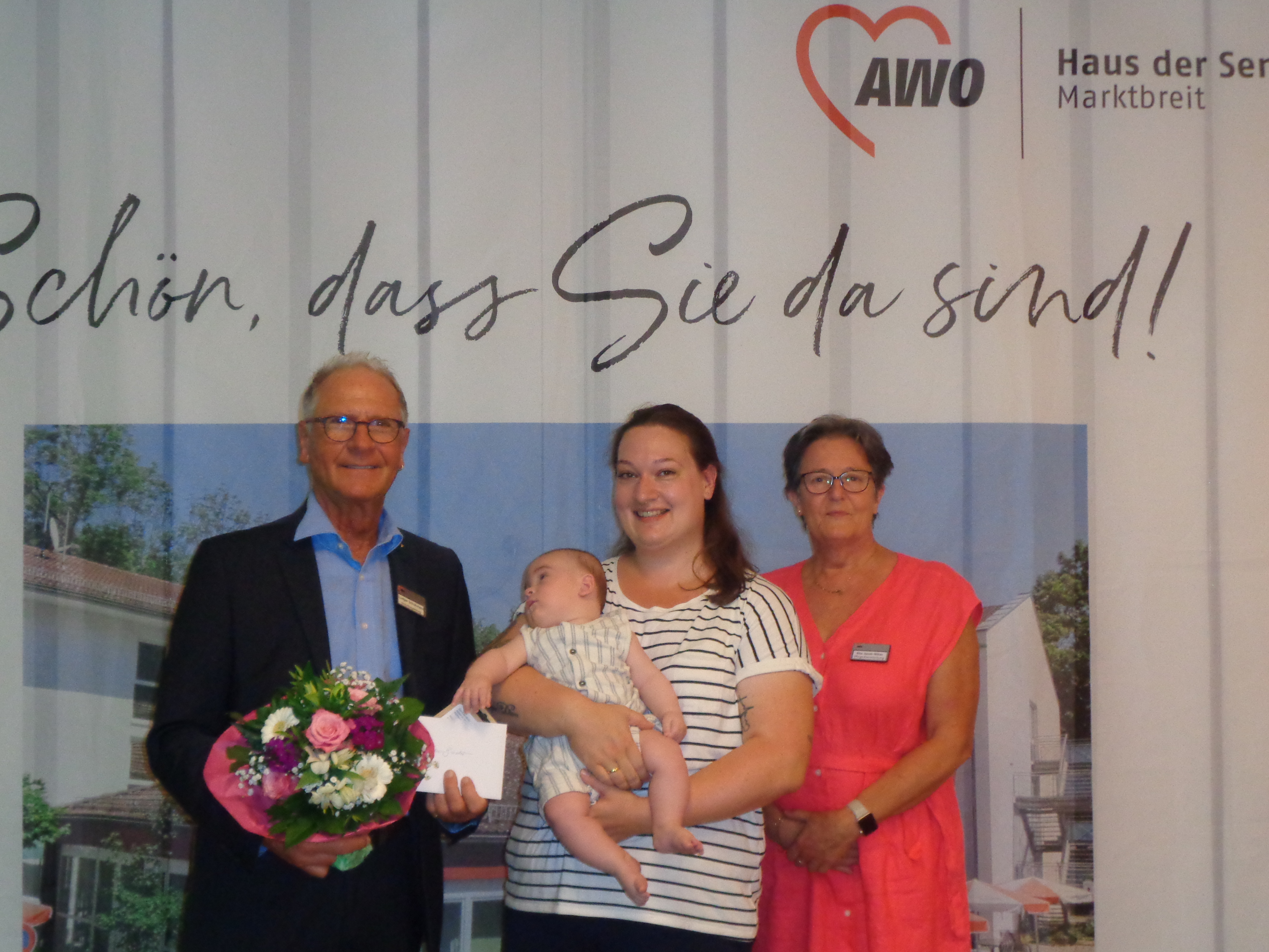 Gleich zweimal konnten Einrichtungsleiter Ludger Schuhmann und Pflegedienstleiterin Rita Jacob-Ritter zum Nachwuchs gratulieren. Unsere Nachtdienstmitarbeiterin Beate Binder hat einen kleinen Sohn und Pflegemitarbeiterin Rose Pendael eine kleine Tochter bekommen. Vom Haus der Senioren gab es einen Blumenstrauß sowie ein Geschenk.