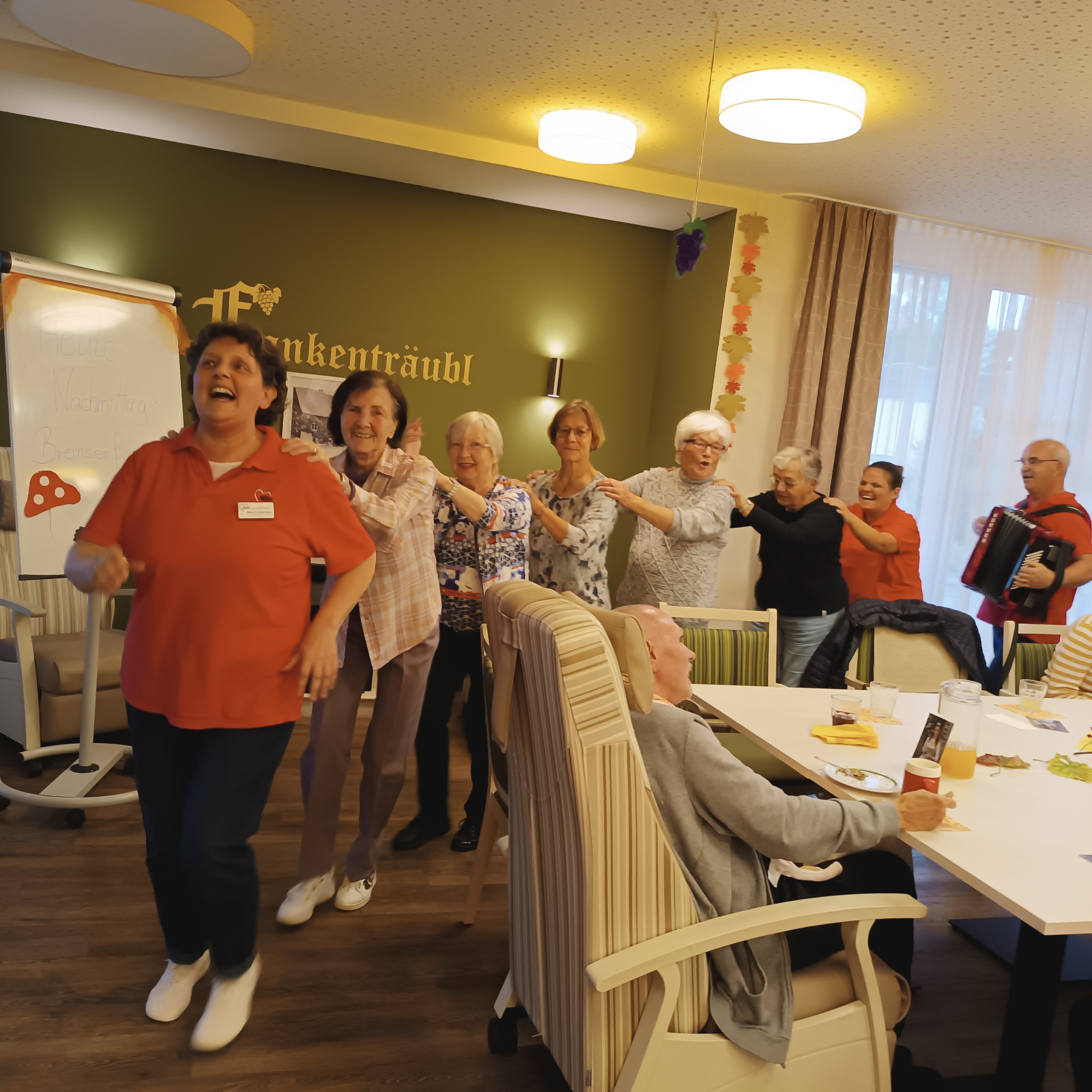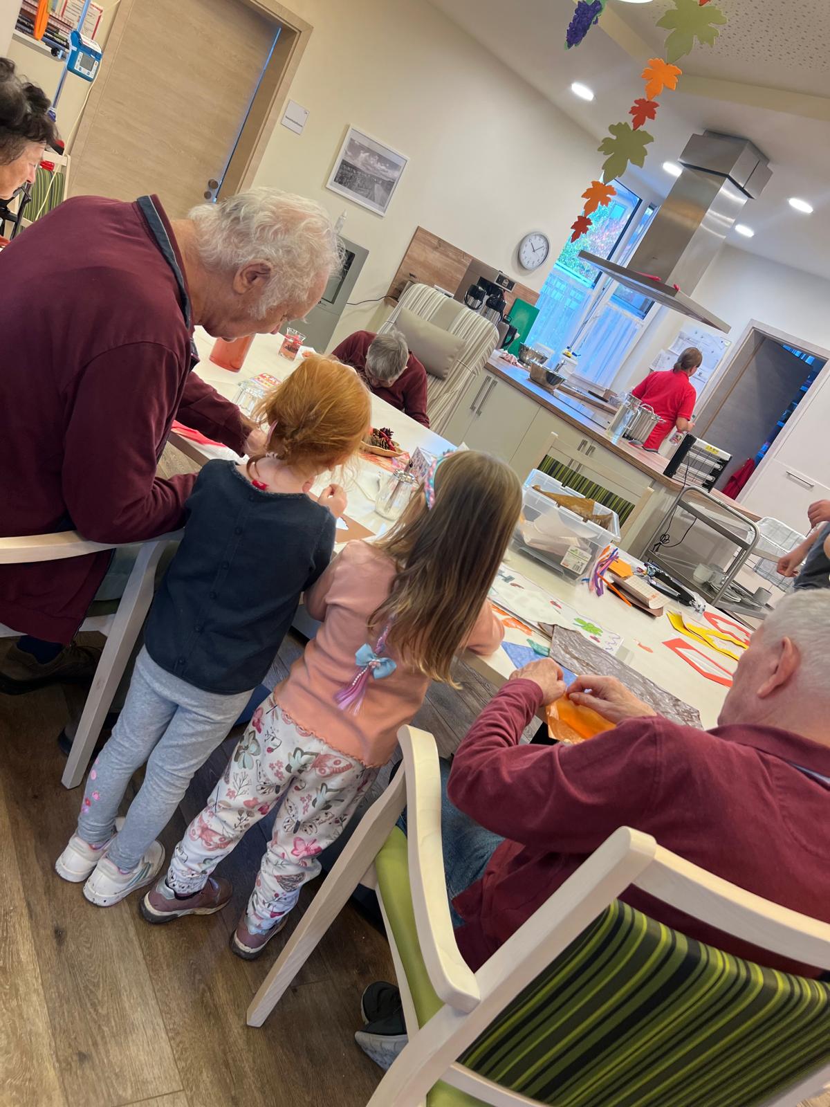 In enger Zusammenarbeit mit dem Evangelischen Kindergarten Buchbrunn gestalten wir einmal im Monat ein ganz besonderes Betreuungsprogramm für unsere Tagesgäste. Jeden Monat dürfen wir uns auf einen inspirierenden Besuch von den Kleinsten freuen, die voller Eifer und Freude zu uns kommen, um zu zeigen, was sie bereits gelernt haben. Die Begegnung zwischen den Kindern und unseren Tagesgästen ist für alle Beteiligten ein Highlight. Die Kinder bringen frischen Wind und neue Perspektiven mit, während die älteren Gäste mit viel Lebenserfahrung und einem offenen Ohr den Kleinen begegnen. So entsteht ein wertvoller Austausch, der beiden Generationen zugutekommt. Ob beim Singen, Basteln oder einfachen gemeinsamen Spielen – hier entstehen nicht nur kreative Momente, sondern auch tiefe, herzliche Verbindungen. Es ist ein wunderschönes Zusammensein, bei dem das Miteinander im Vordergrund steht und wir alle viel voneinander lernen können. Wir freuen uns auf viele weitere Begegnungen und darauf, die kleinen Besucher immer wieder in unserer Mitte zu begrüßen!