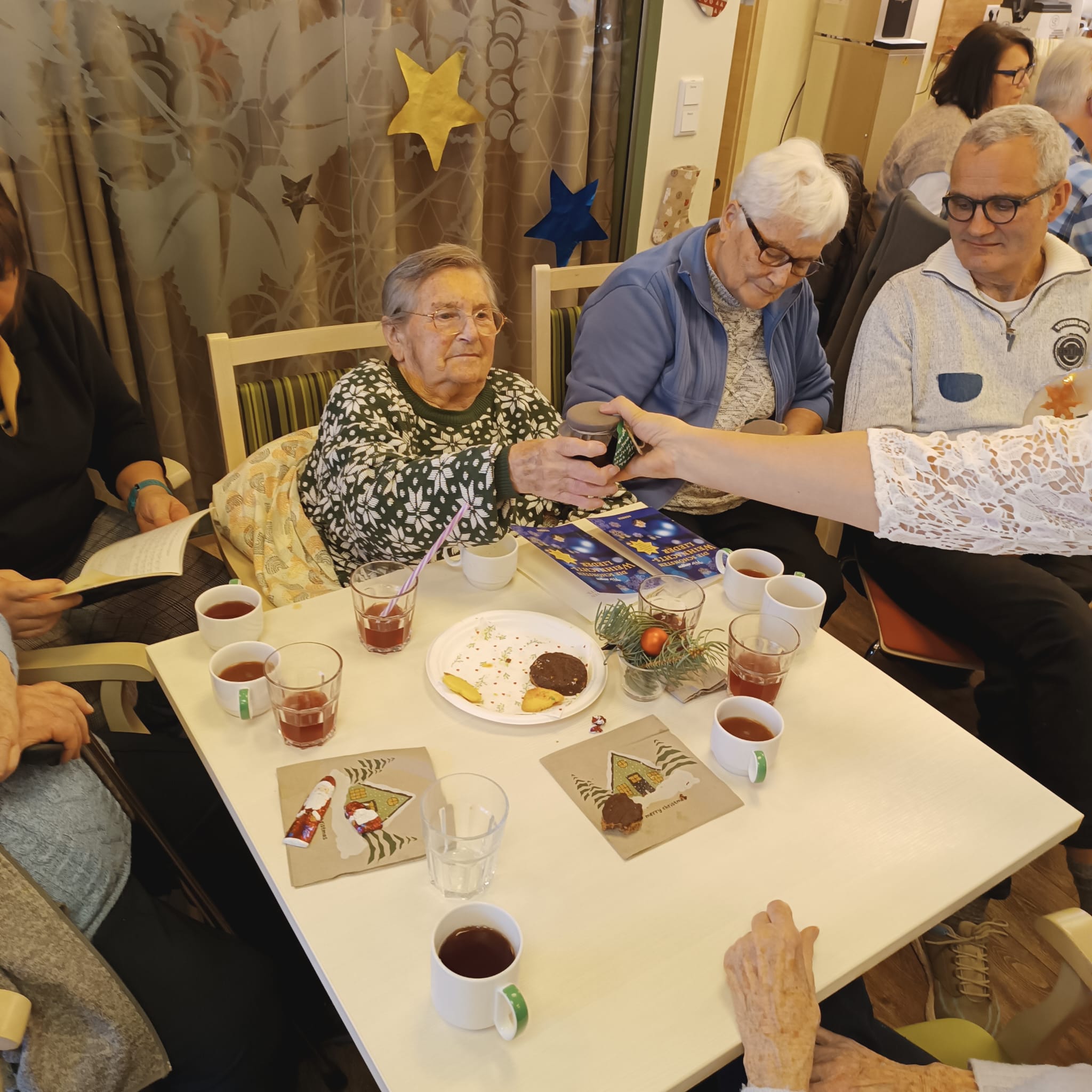 Kürzlich versanstalteten wir in unsere Tagespflege eine festliche Weihnachtsfeier, die sowohl für unsere Tagesgäste als auch deren Angehörige ein ganz besonderes Ereignis war. Die Atmosphäre war durchweg schön und es war spürbar, wie die Vorfreude auf das Fest alle Anwesenden erfüllte.