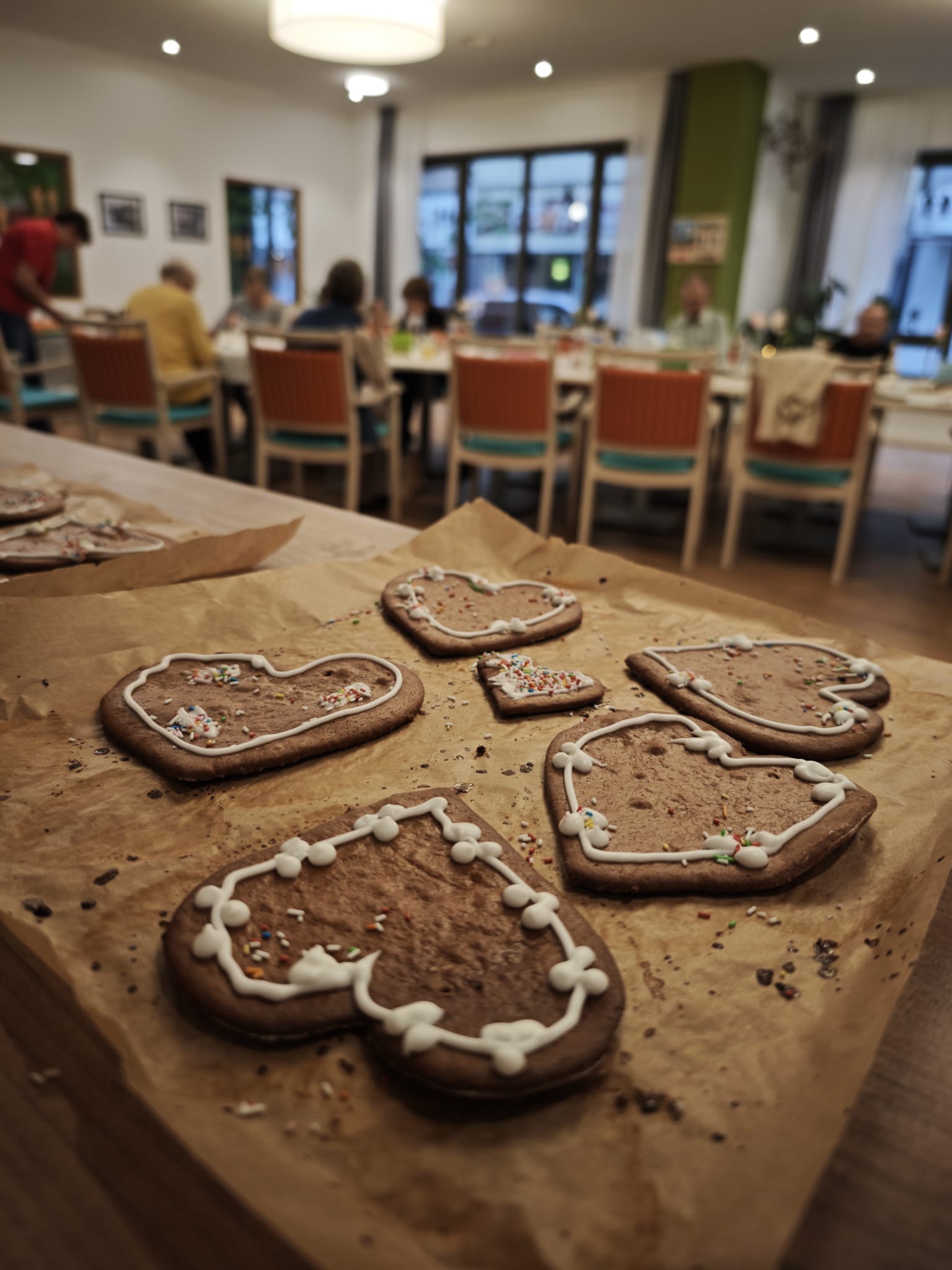 In unserer AWO Tagespflege wurde heute gemeinsam gebacken: Mit viel Freude und Teamgeist entstanden liebevoll verzierte Lebkuchenherzen. Alle haben mitgeholfen - und das Ergebnis konnte sich sehen (und schmecken) lassen. Ein schöner Tag voller Lachen, Kreativität und Gemeinschaft.