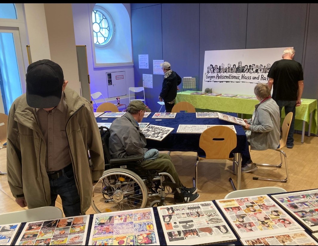 Die Alte Synagoge Kitzingen zeigt die Jahresausstellung ,,Wie gehts es dir?". Zeichner*innen setzen mit ihren Arbeiten ein starkes Zeichen gegen Antisemitismus,Hass und Rassismus. Auch die Gäste der AWO Tagespflege Kitzingen besuchten die Ausstellung und erlebten einen besonderen Ausflug voller Begegnungen, Austausch und Inspiration.