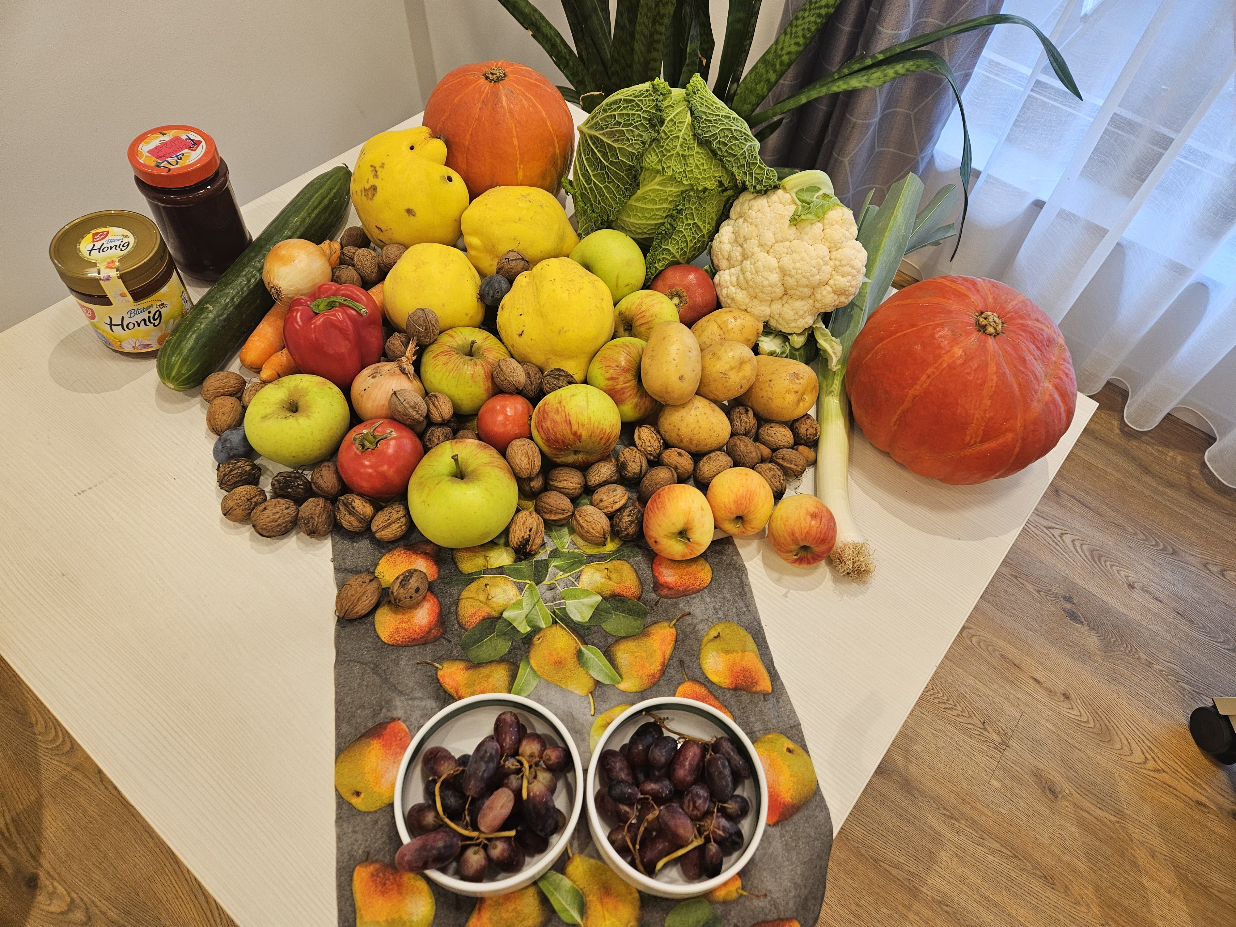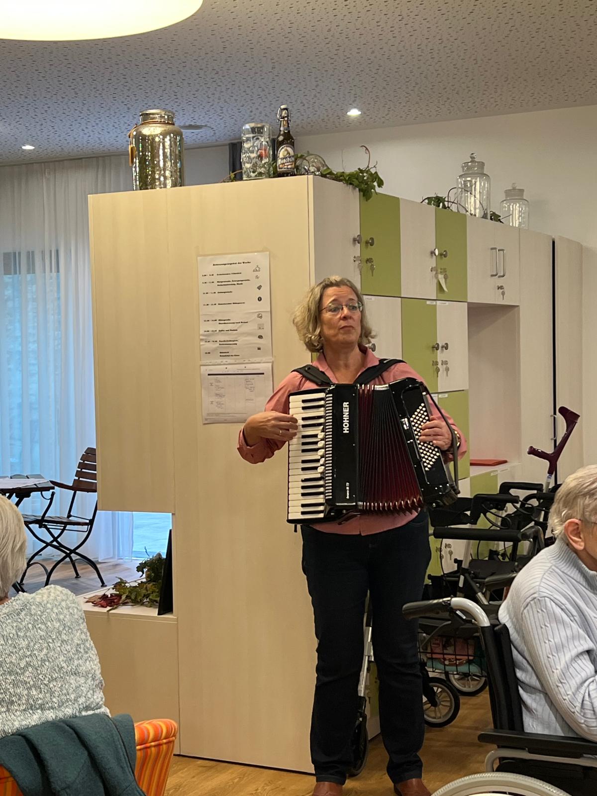 In unserer Tagespflege Kitzingen feierten wir mit Diakon Jörg Kornacker einen Erntedank - Gottesdienst. Musikalisch wurde die Feier durch Akkordeonklänge bereichert.