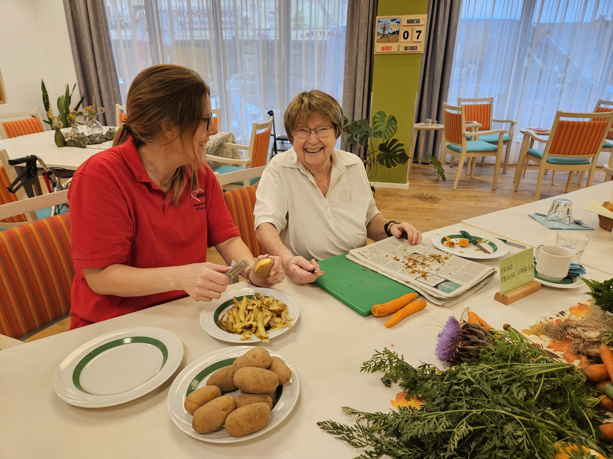Wir feierten in der Tagespflege ein fröhliches Erntedankfest, das allen Gästen in schöner Erinnerung bleiben wird. Die Vorbereitungen begannen bereits am Morgen, als die Tagesgäste voller Vorfreude in die Küche kamen. Die Tische waren festlich gedeckt mit bunten Herbstdekorationen und die Luft war erfüllt von einem köstlichen Duft frischer Zutaten.