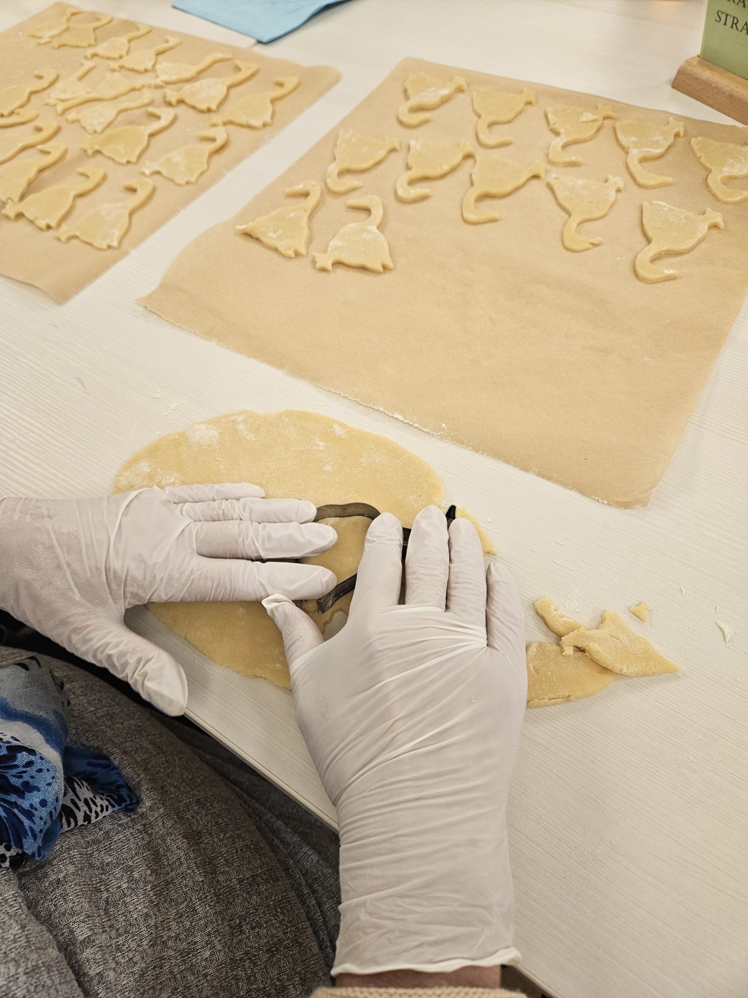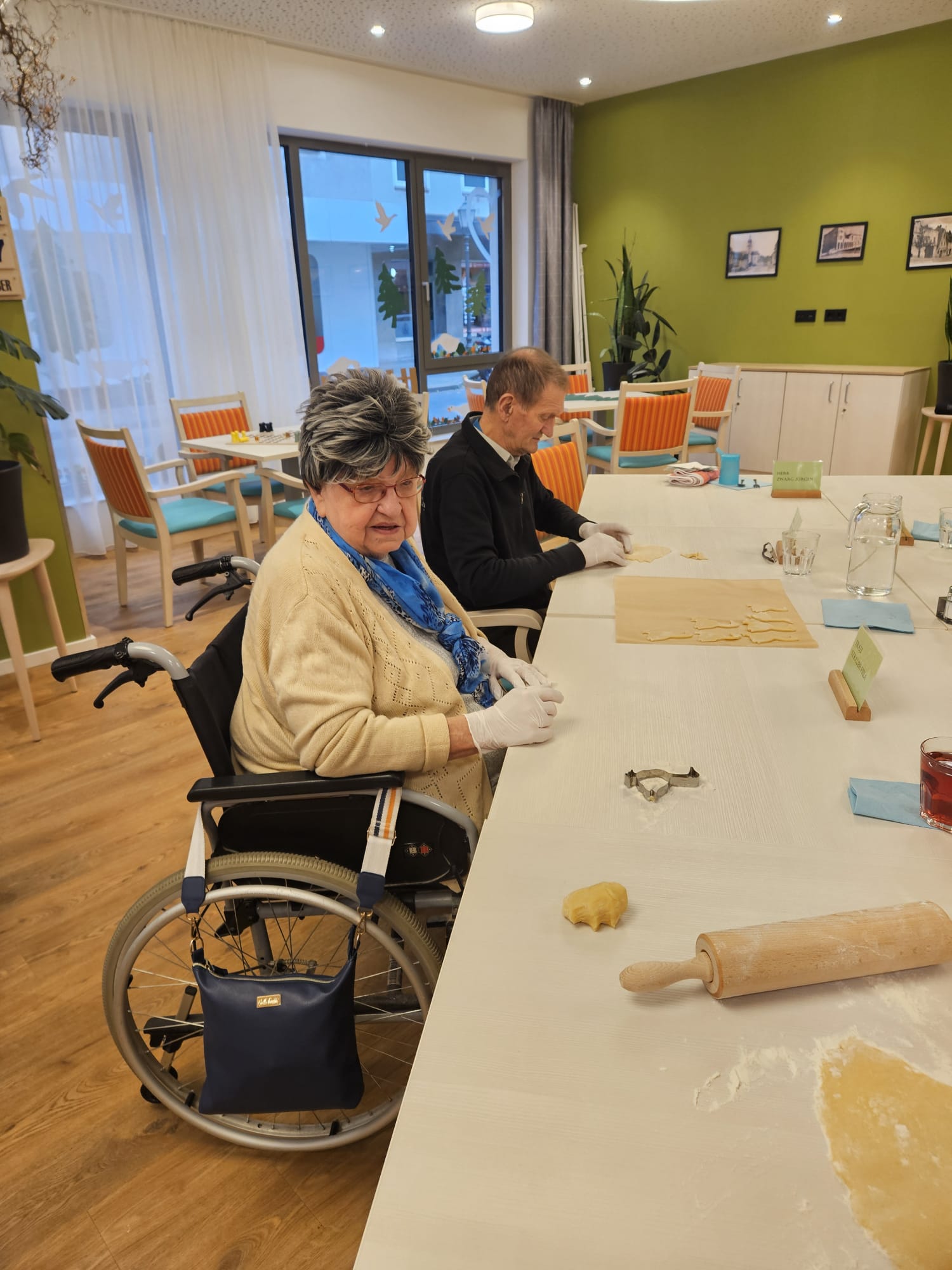 Gemeinsam mit den Tagesgästen wird die Vorfreude auf das Osterfest lebendig, wenn fleißig Teig geknetet, ausgerollt und mit bunten Ausstechformen verziert wird.