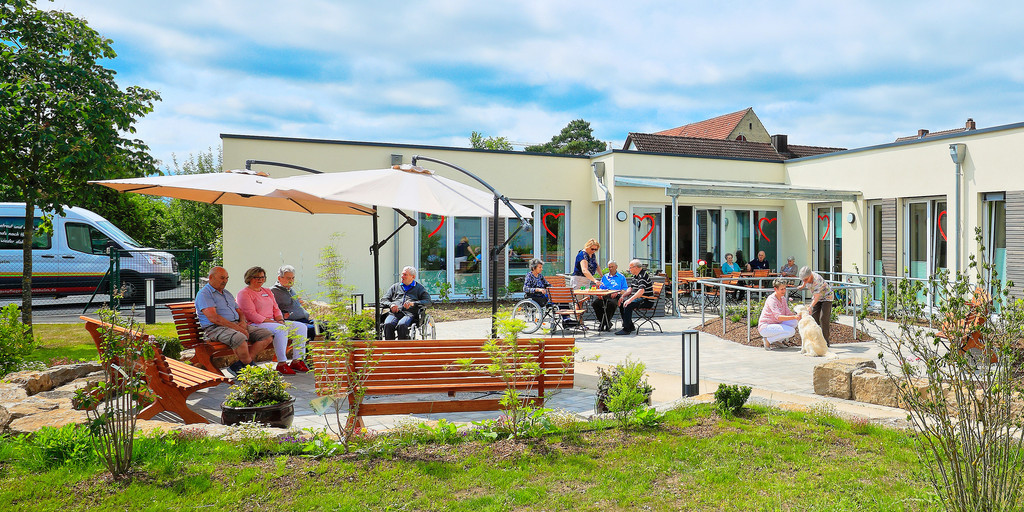 Bei schönem Wetter genießen unsere Gäste die Zeit im Freien: Der liebevoll angelegte Garten an der Tagespflege ist speziell darauf ausgelegt, die verschiedenen Sinne anzuregen – ein Garten, der also zum Erleben und Mitmachen einlädt: Gemütliches Beisammensein, angenehme Gespräche und Aktivitäten wie die Pflege von Blumen, Kräutern und Obststräuchern oder die Gemüseernte stehen dann auf dem Programm.