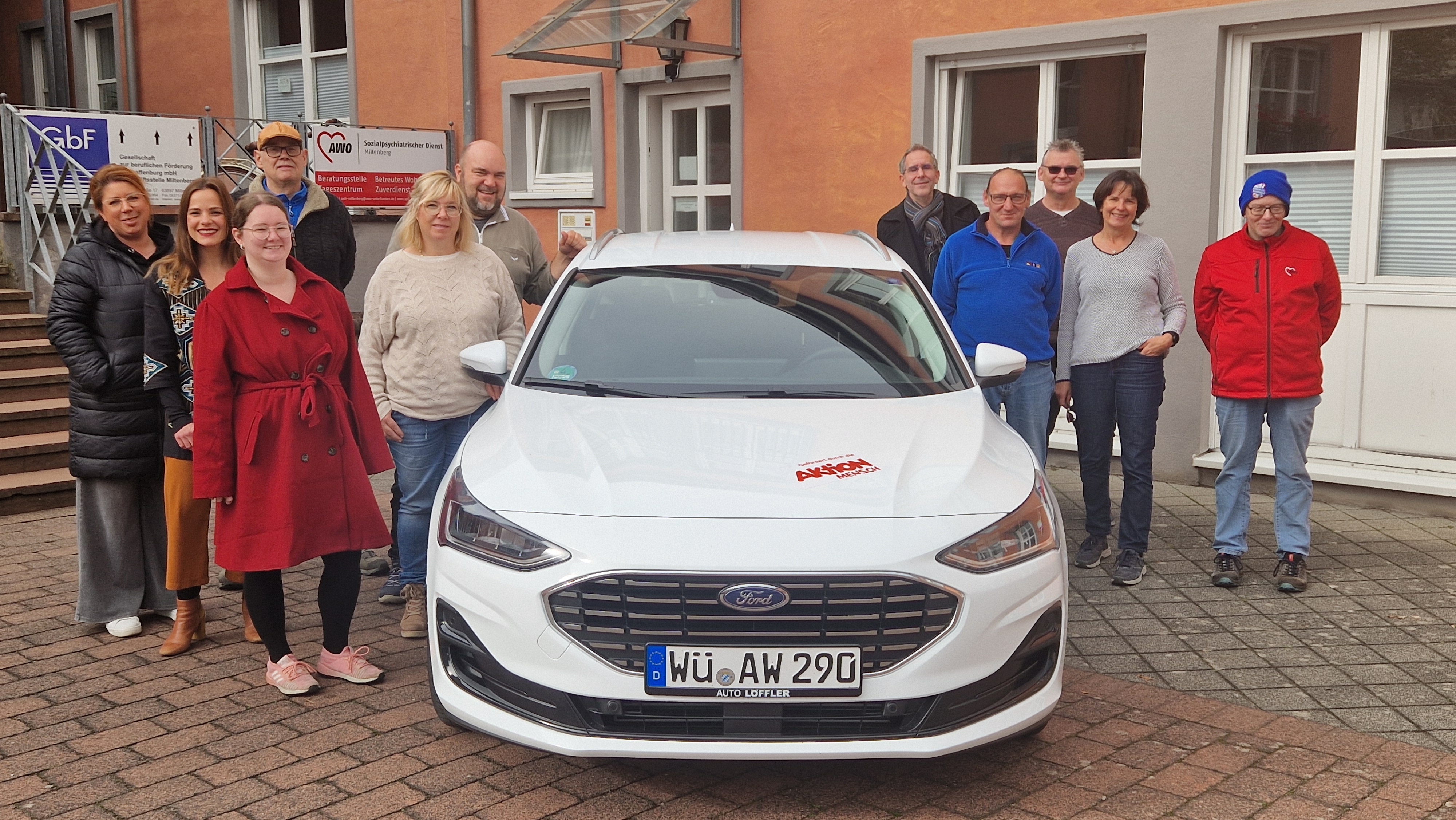 Groß ist die Freude in der Tagesstätte in Miltenberg. Dank der Unterstützung durch Aktion Mensch steht den Mitarbeiter*innen und Teilnehmer*innen ein neues Fahrzeug zur Verfügung.