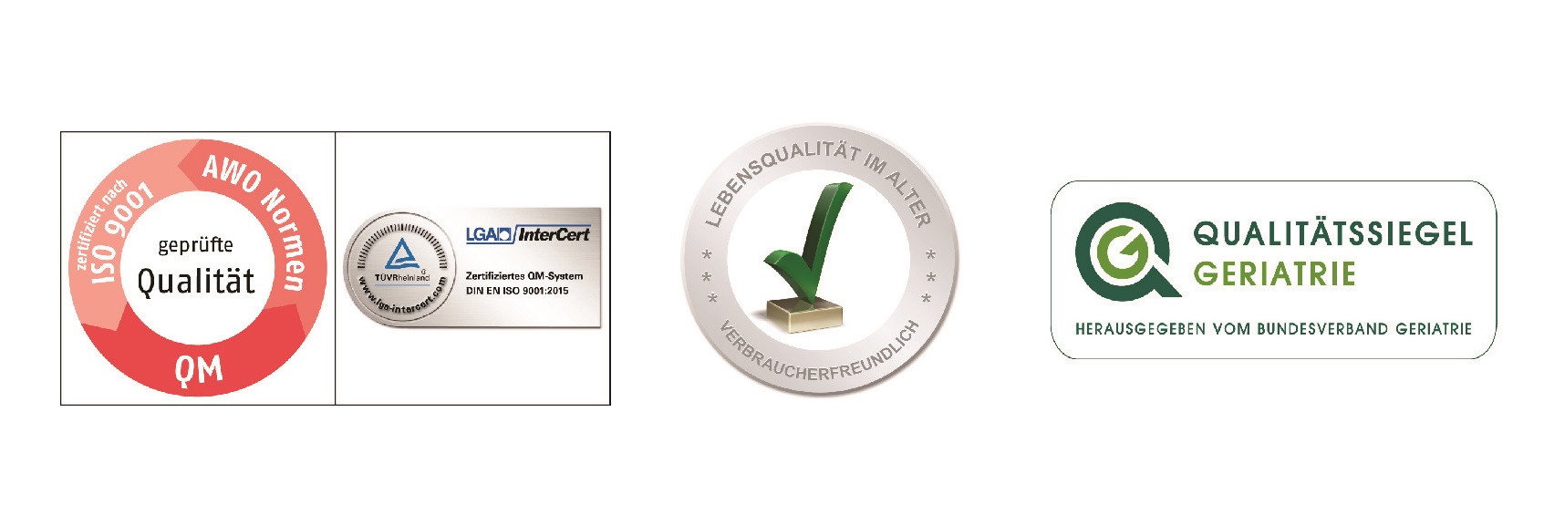 Unser Qualitätsmanagement für Einrichtungen der AWO care gemeinnützigen GmbH ist nach ISO 9001:2015 zertifizert. Eine Vielzahl unserer Einrichtungen verbürgen Ihre Qualitätsansprüche zudem mit weiteren Tests, Qualitätssiegeln o. ä:, wie z. B. MDK-Prüfungen, „Der Grüne Haken“ und Tests von Fachmagazinen.